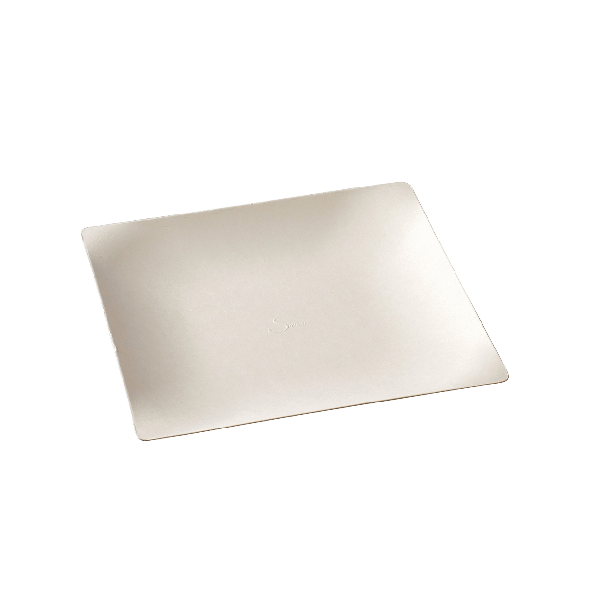 L'assiette Imagine de 110x110 mm, fabriquée en pulpe de canne, combine élégance et durabilité.