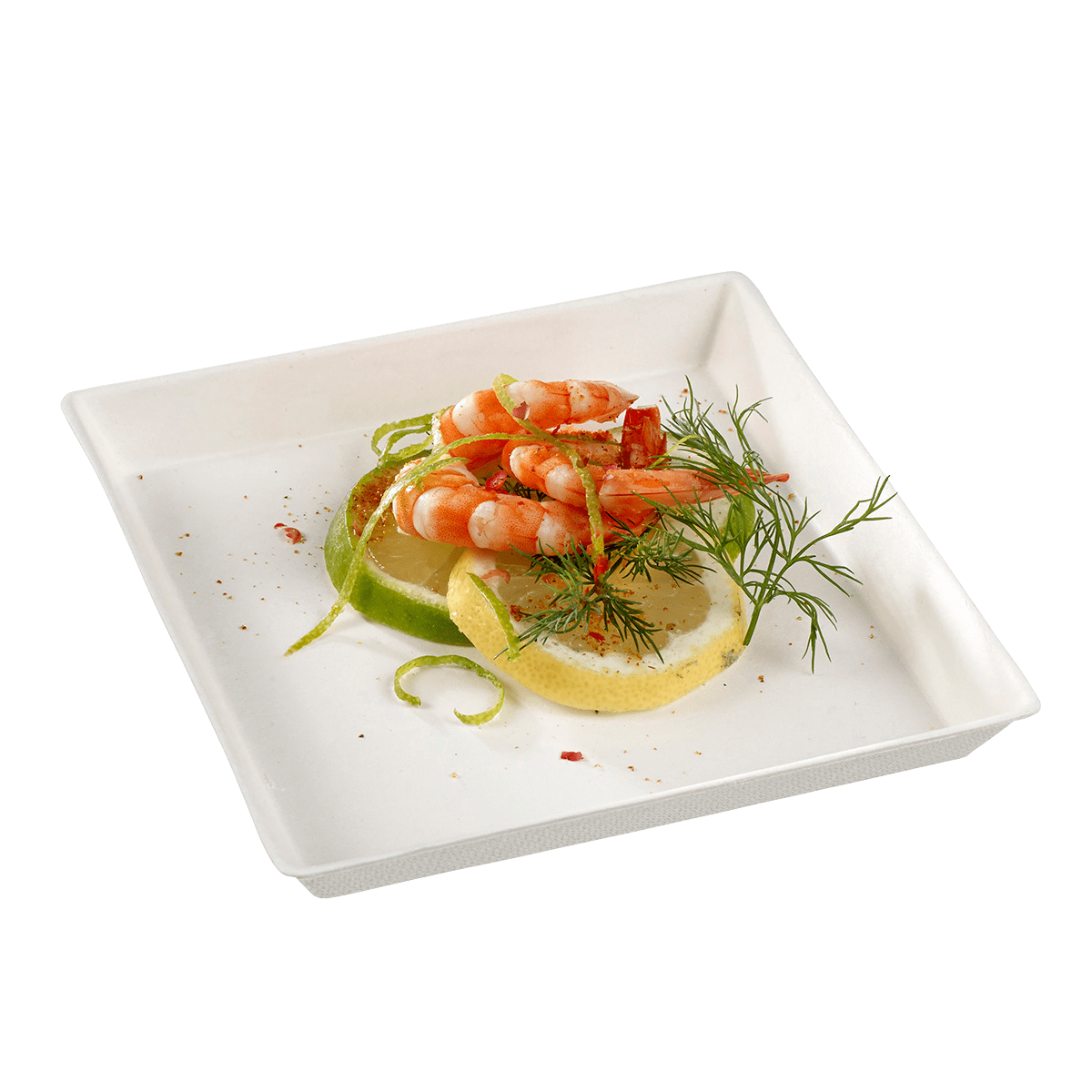 Découvrez l'excellence de l'assiette Quartz Blanche 130x130 mm, une création sophistiquée en pulpe de canne avec lamination, parfaite pour sublimer vos présentations traiteur.
