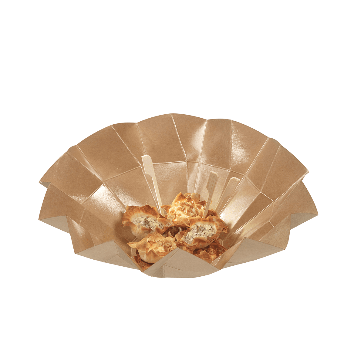 Fabriquée en carton avec une lamination BOPP, la boîte Iris M est idéale pour transporter des petites bouchées gourmandes tout en maintenant les ingrédients à l'intérieur en toute sécurité. Cet emballage recyclable est compatible avec un réchauffage au micro-ondes.