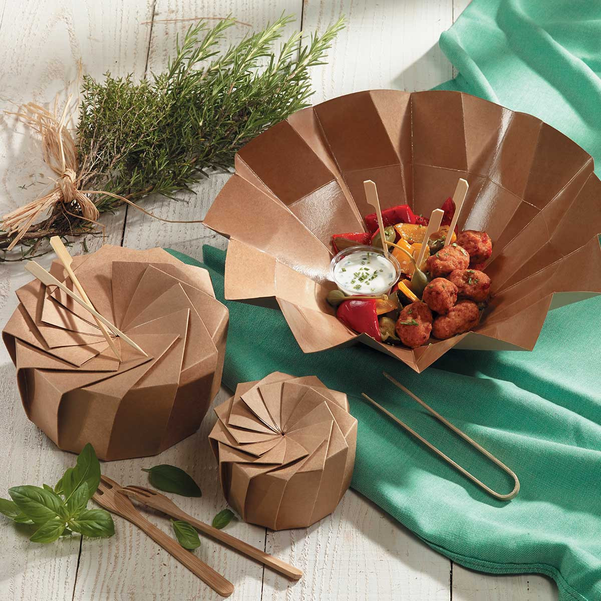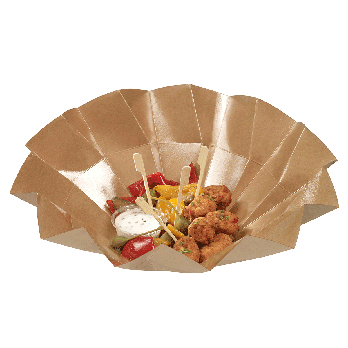 La boîte Iris L d'une contenance de 770 ml est un choix idéal pour impressionner les clients avec une expérience culinaire sophistiquée, que ce soit sur place ou à emporter. Les 12 facettes pré-pliées ajoutent une touche de raffinement lorsque la boîte est fermée, tandis que son grand angle de vue met en valeur les préparations une fois ouverte, éveillant ainsi l'appétit des clients.