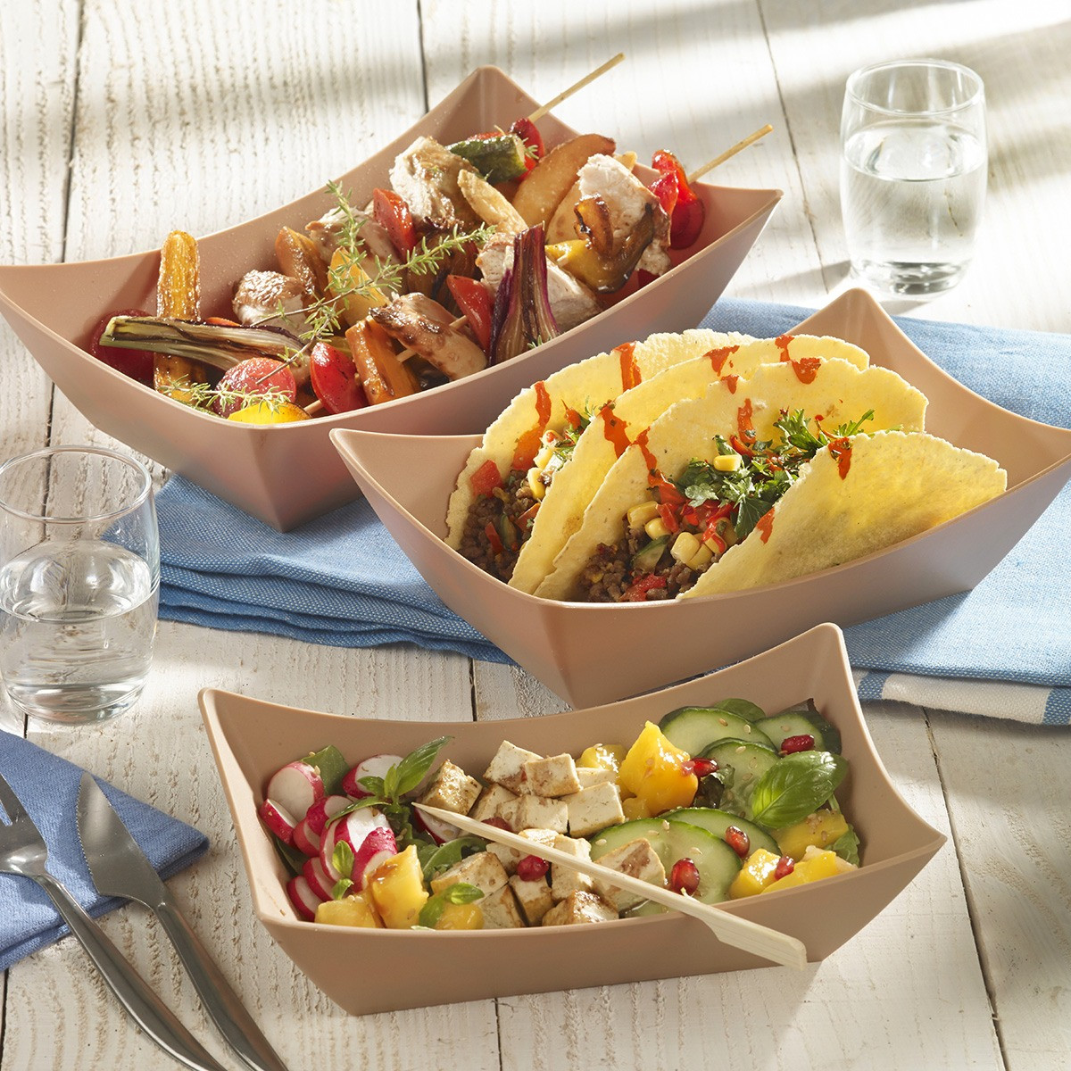 Offrez une expérience culinaire raffinée avec nos barquettes Snacking LOOP en plastique PP beige foncé.
