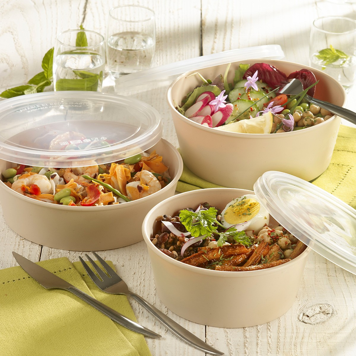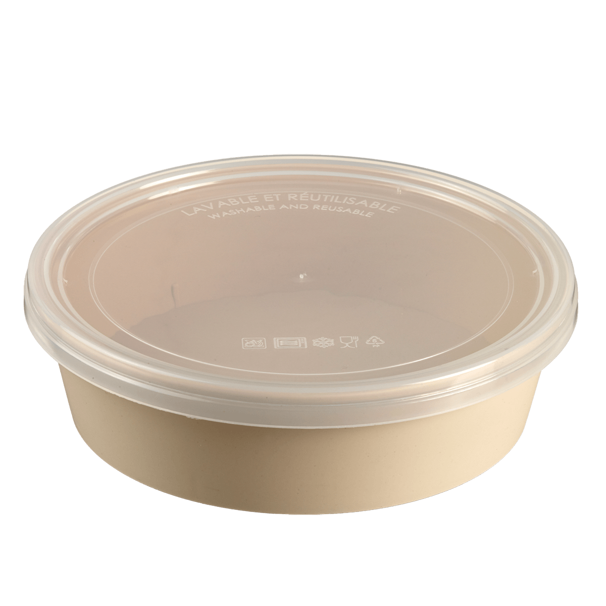 Explorez la polyvalence de notre Saladier LOOP avec couvercle en plastique PP beige clair de 1000 ml.