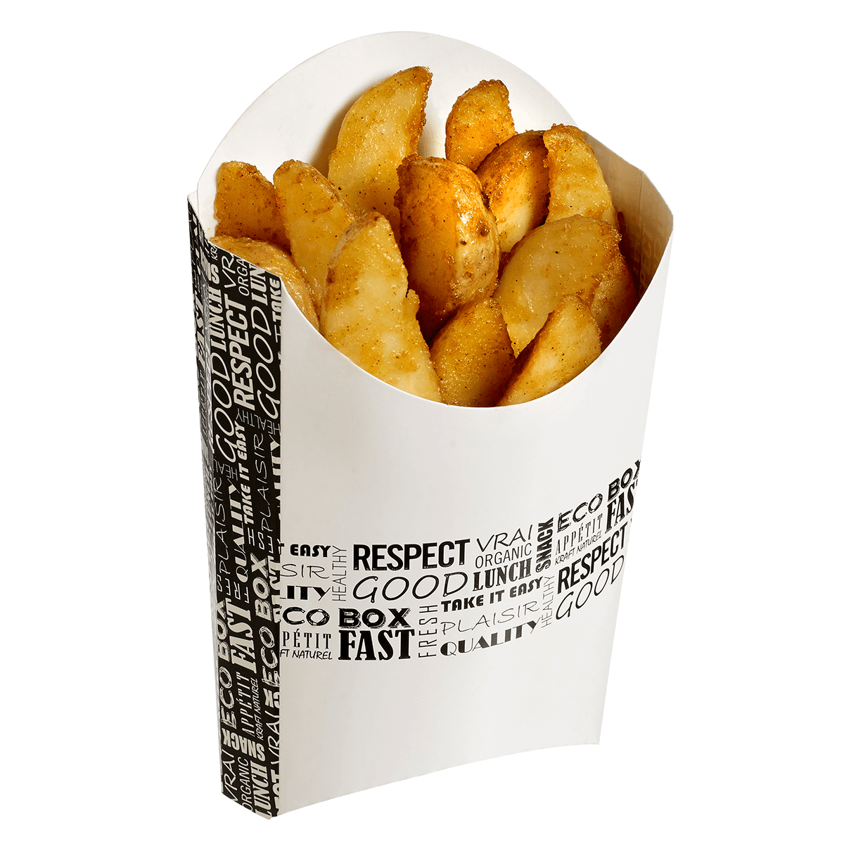 Découvrez la barquette à frites District grand modèle, l'accessoire parfait pour servir vos délicieuses frites. Avec des dimensions de 135x85x160 mm, cette barquette en carton est spécialement conçue pour contenir une généreuse portion de frites croustillantes.
