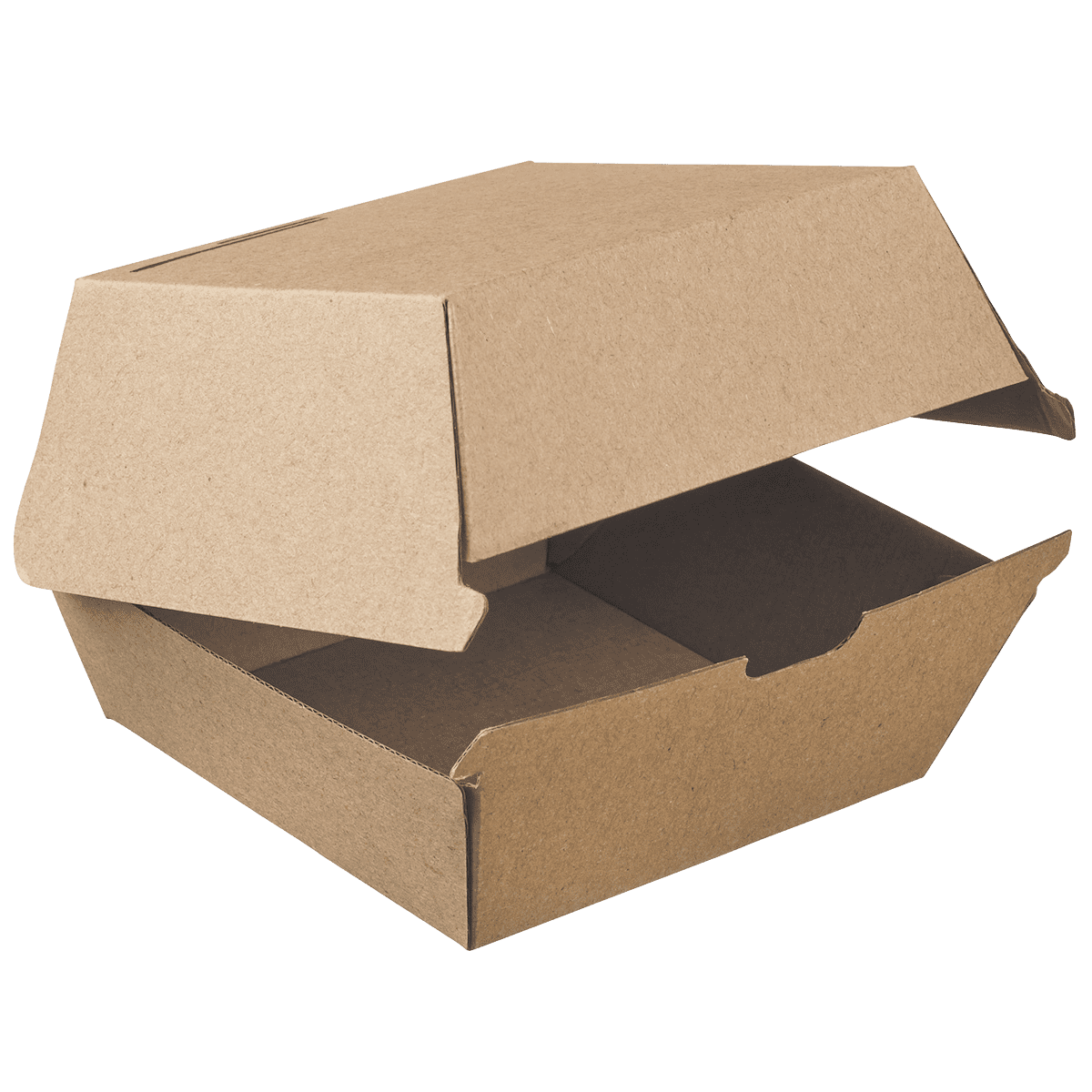 Le grand modèle de boîte burger Ecokraft offre une capacité généreuse idéale pour des burgers de grande taille, accompagnements ou salades.