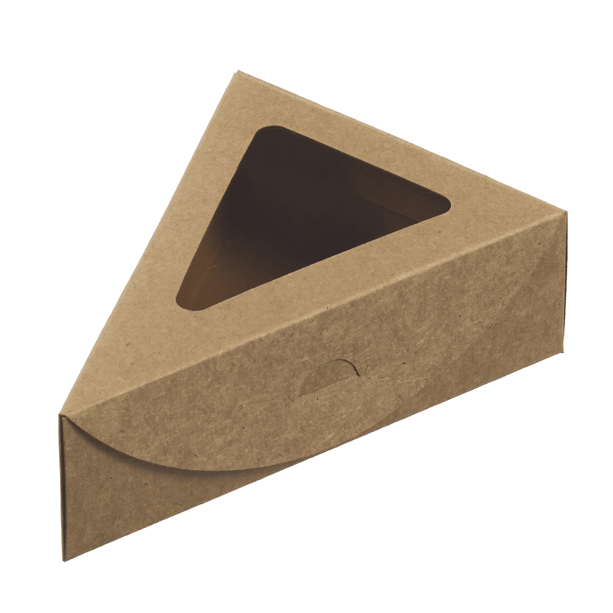 Avec sa fenêtre transparente, la boîte triangle 155x110x45 est un accessoire indispensable pour mettre en valeur des parts individuelles. Tarte, flan, quiche, l'emballage est aussi bien adapté aux préparations salées que sucrées.