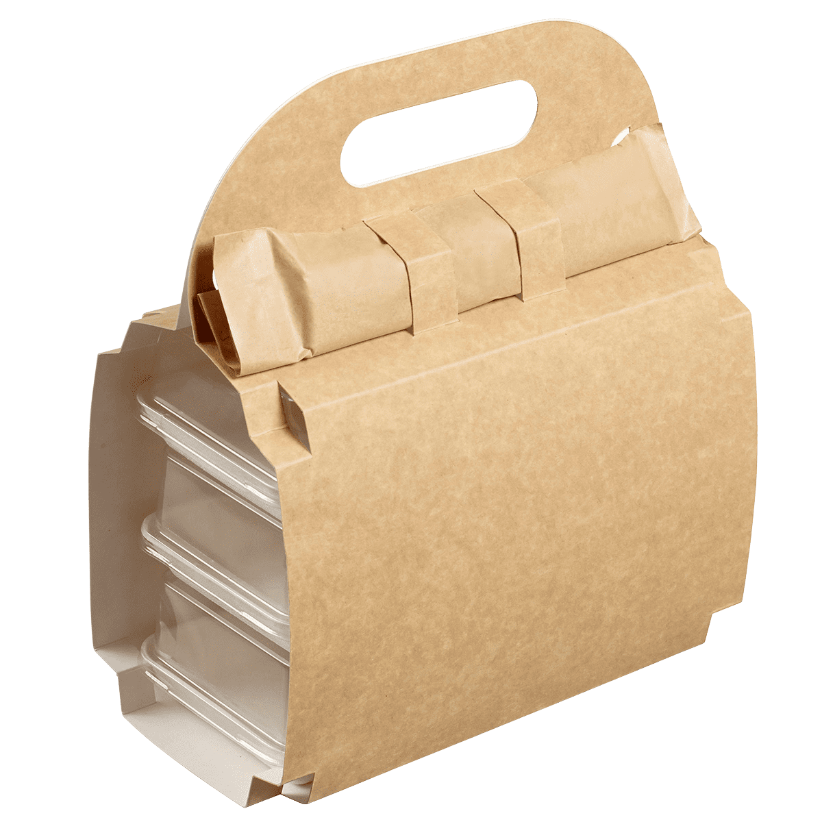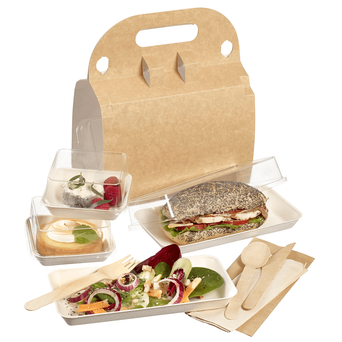 La valisette, avec un emplacement pour couverts, compatible avec les assiettes Kanopée 200x100 et 100x100 mm.