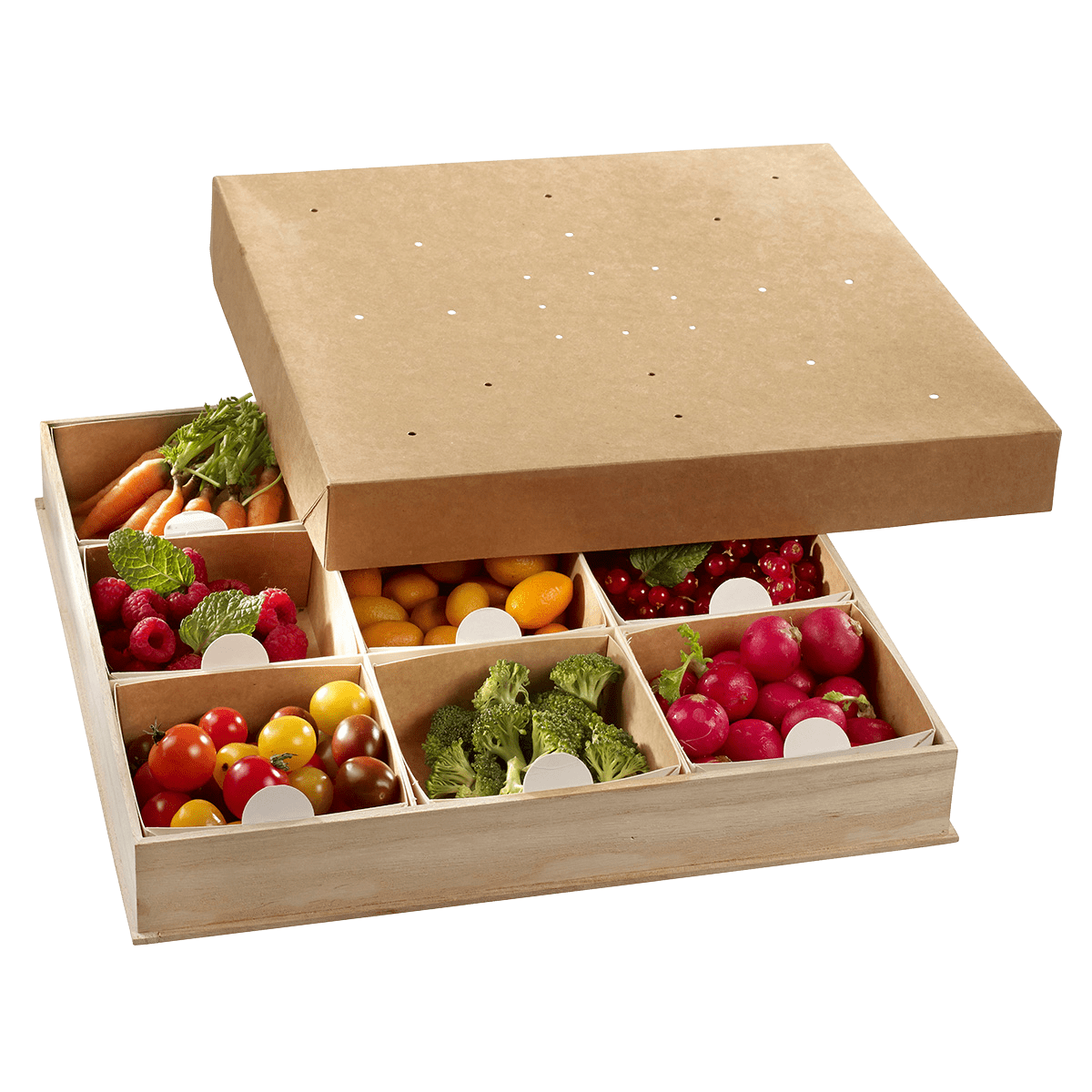La Boîte Modulo en bois 360x360 mm est conçue pour valoriser vos créations culinaires.