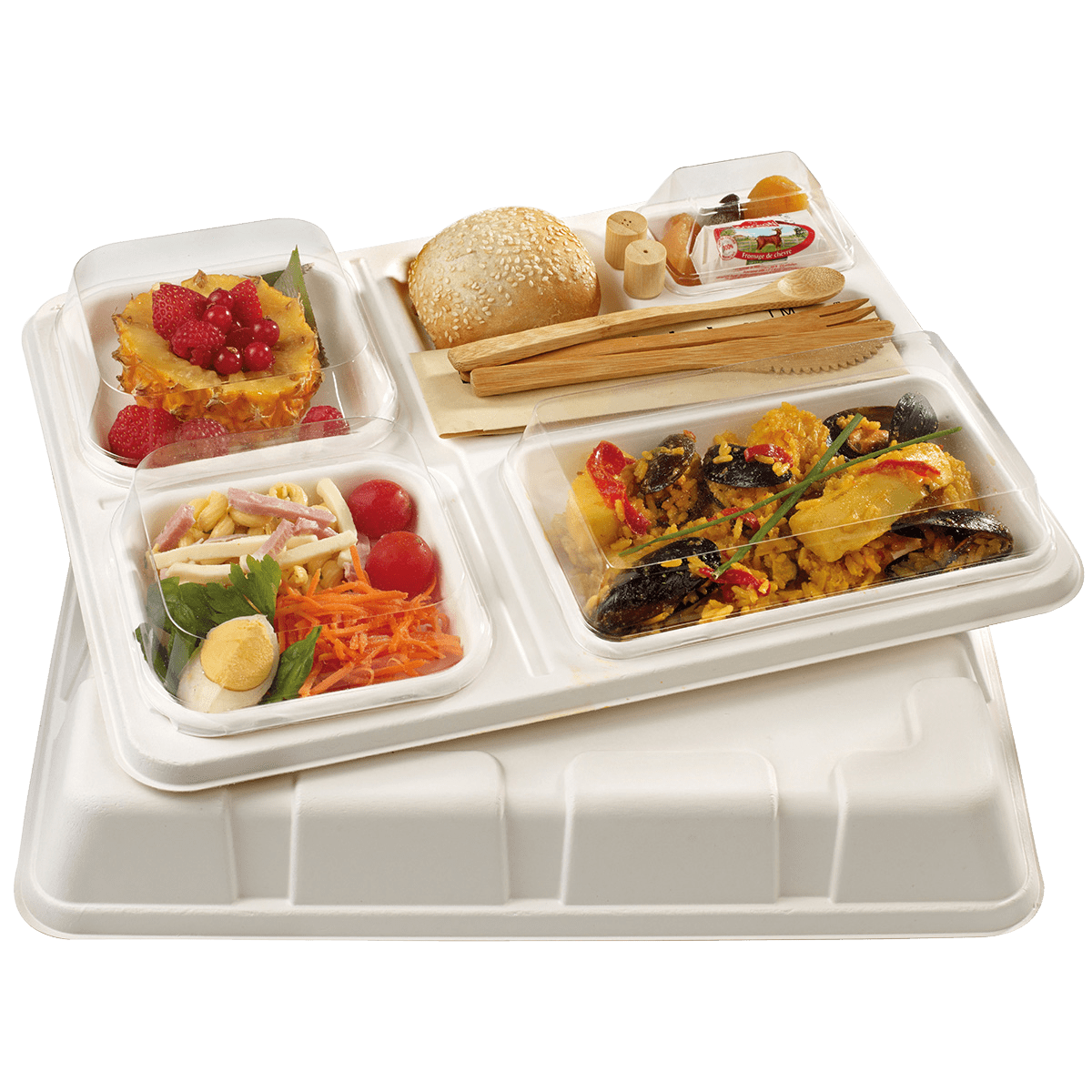 Au choix, couvercle en pulpe de canne ou fourreau en carton kraft recyclable.