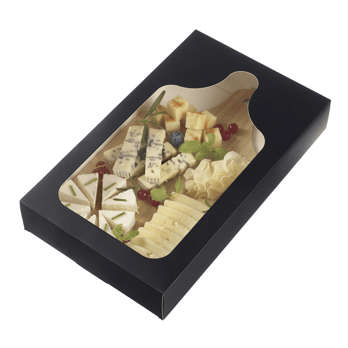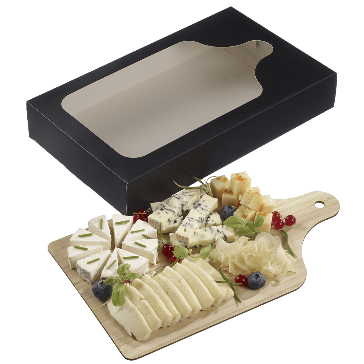 En plus d'être pratique, la boîte en carton pour planche bistro est marquée par une apparence soignée. Le carton noir associé à la fenêtre transparente apporte une touche d'élégance lors de l'exposition des différentes planches dans leurs contenants.