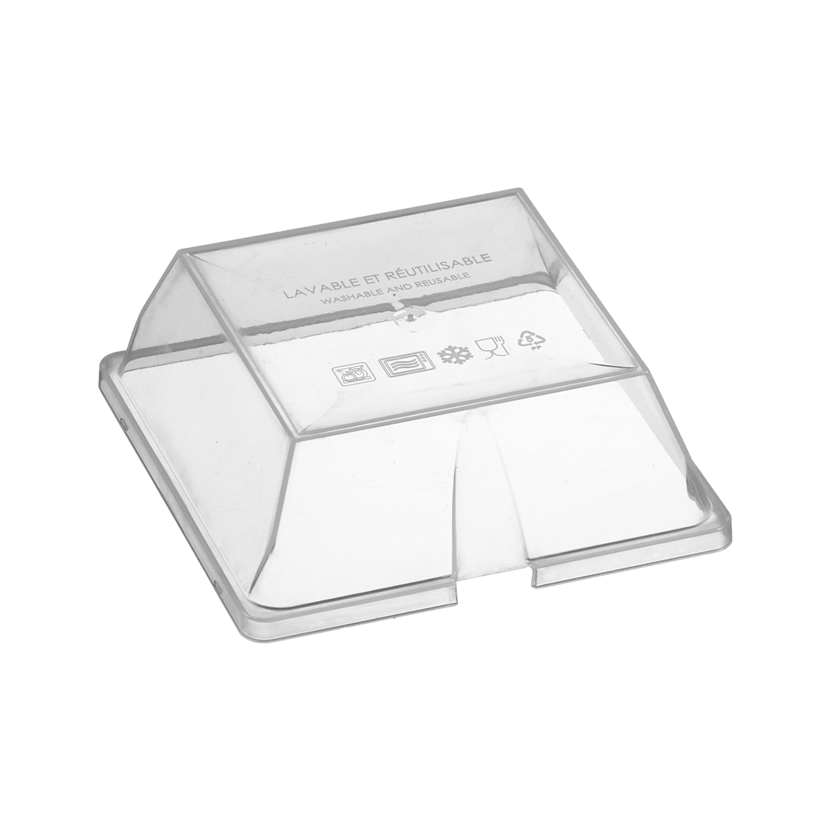 Nos couvercles SOLIA sont spécialement conçus pour nos assiettes Fluid' PP 160x160 mm, offrant une solution pratique et efficace pour la protection de vos plats.