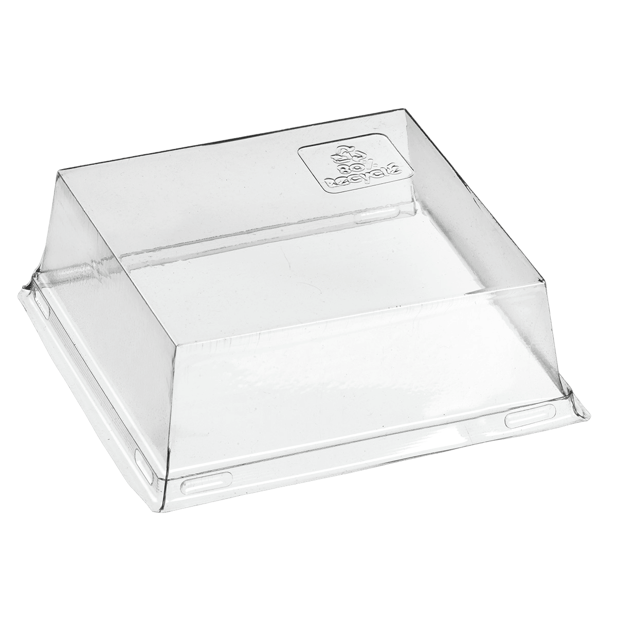 Le couvercle RPET pour assiette Quartz 110x110 mm en pulpe de canne est conçu pour garantir une fermeture sécurisée et étanche de vos plats à emporter.