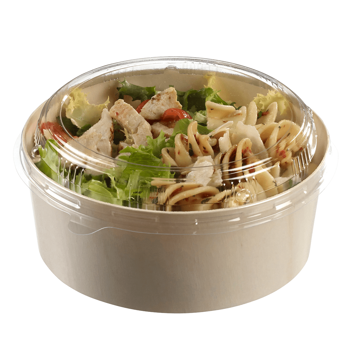 Saladier en bois laminé de 875 ml, idéal pour des salades généreuses ou d'autres plats à emporter.
