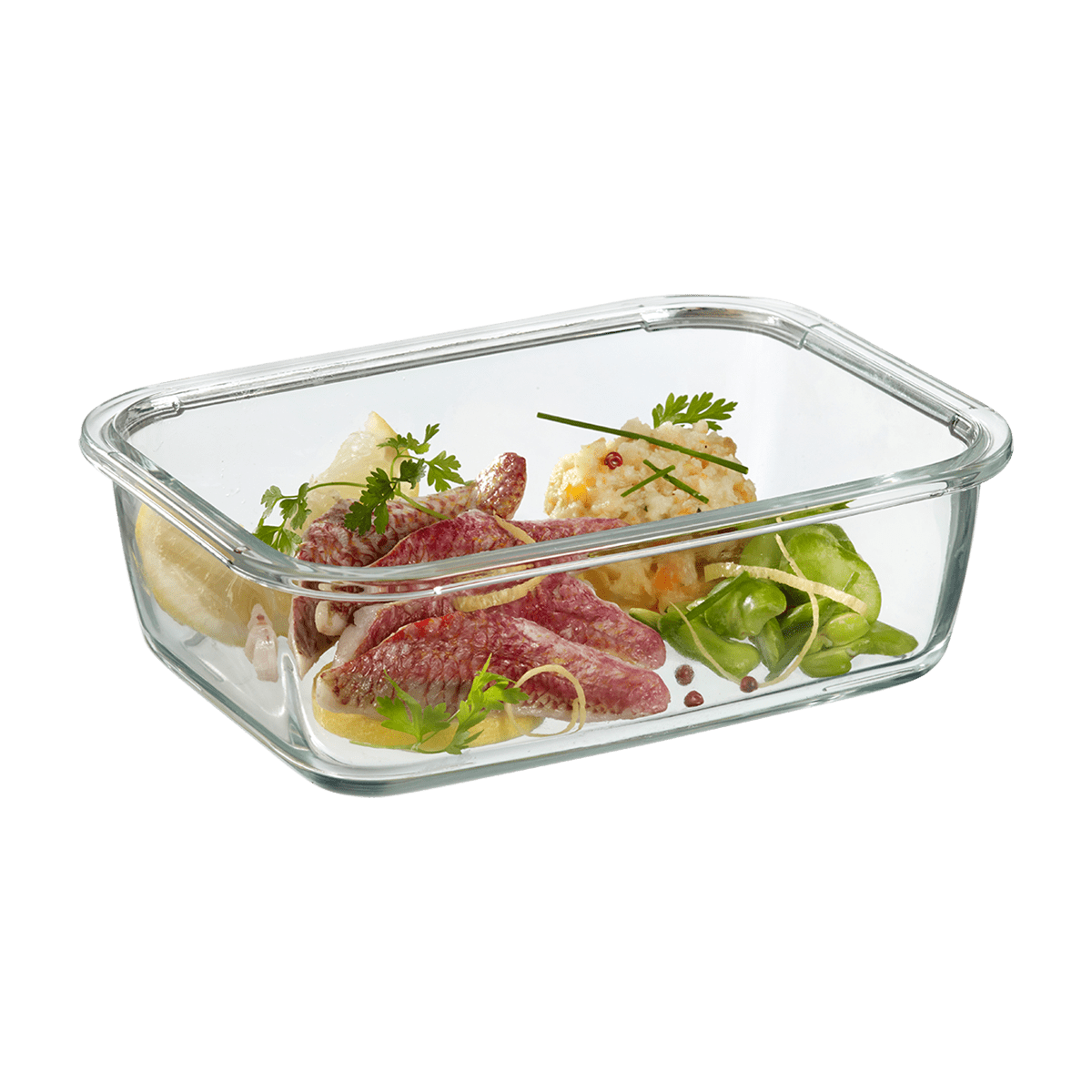 Boîte rectangulaire grand format, conçue pour accueillir des repas complets ou des portions familiales.