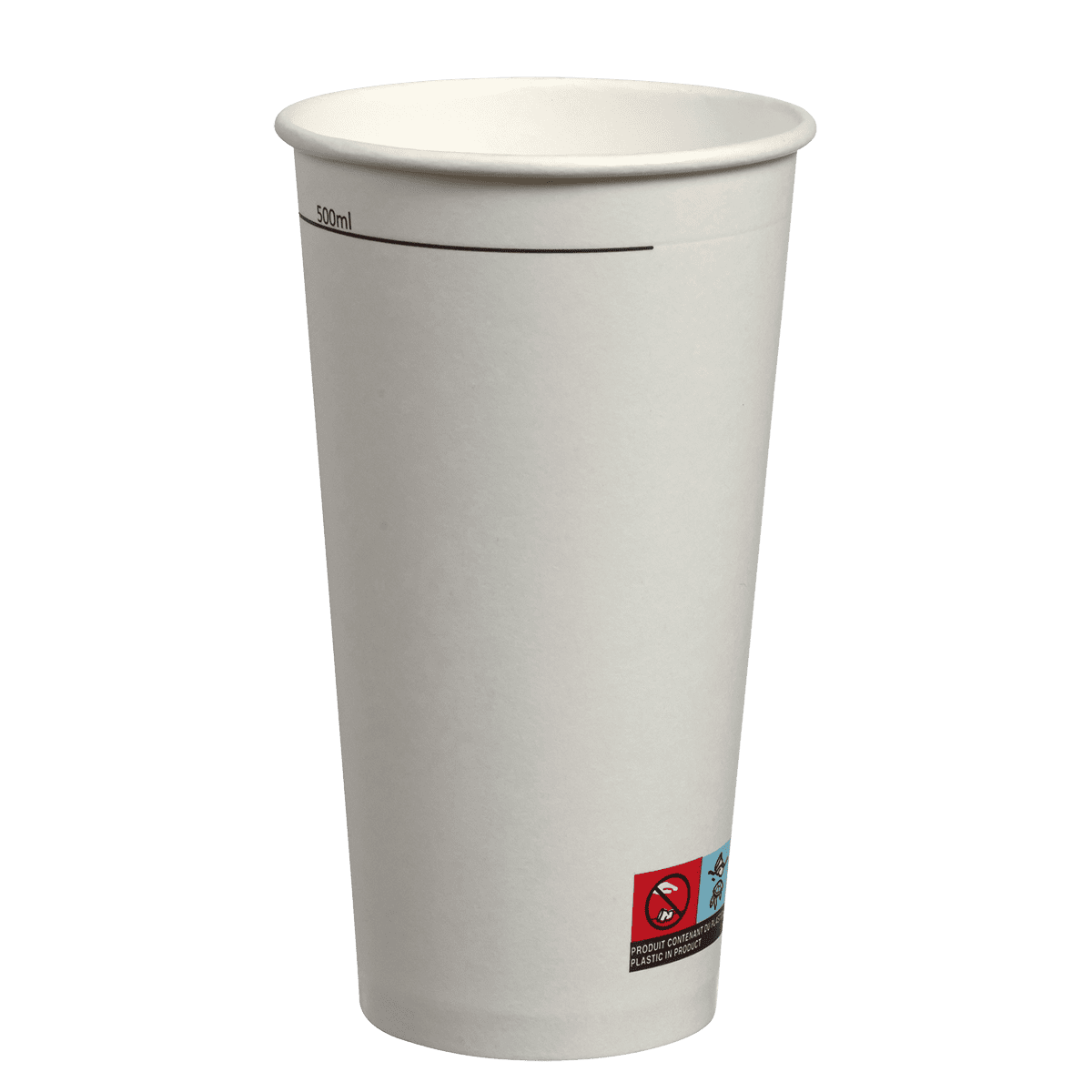 Questo bicchiere in cartone è dotato di una tacca di graduazione, che indica la capacità utile di 500ml. Il bicchiere graduato è perfetto per la vendita di bevande come bibite, frullati, tè freddi, o ancora bevande calde o alcoliche durante eventi.