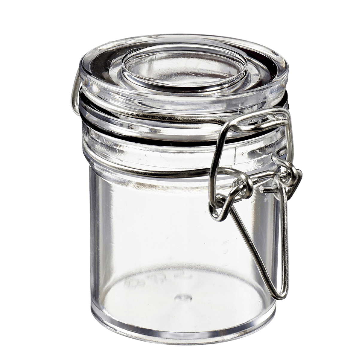 Ispirato ai tradizionali barattoli con cerniera metallica e guarnizione ermetica, questo mini vasetto trasparente in plastica da 45 ml è ideale per verrine da cocktail, preparazioni spalmabili per l'aperitivo o per trasportare le tue salse come vinaigrette o maionese.