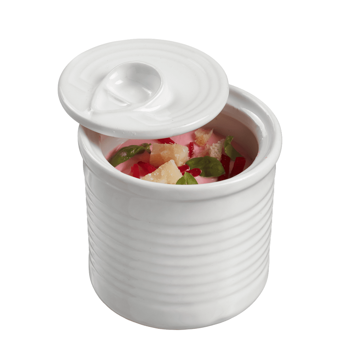 La verrine conserve in ceramica da 100 ml offre un'opzione originale per presentare e conservare le tue delizie culinarie. Ispirata al design di una scatola di latta, questa verrine offre un tocco unico alle tue creazioni gastronomiche.