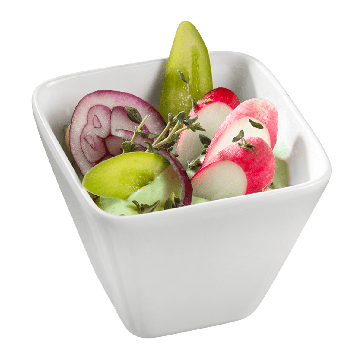La verrine Emeraud' in ceramica, con una capacità di 140 ml e dimensioni di 74x74x60 mm è ideale per esaltare le tue presentazioni culinarie. Questa verrine in ceramica bianca è perfetta per presentare i tuoi buffet, ricevimenti o eventi gastronomici.