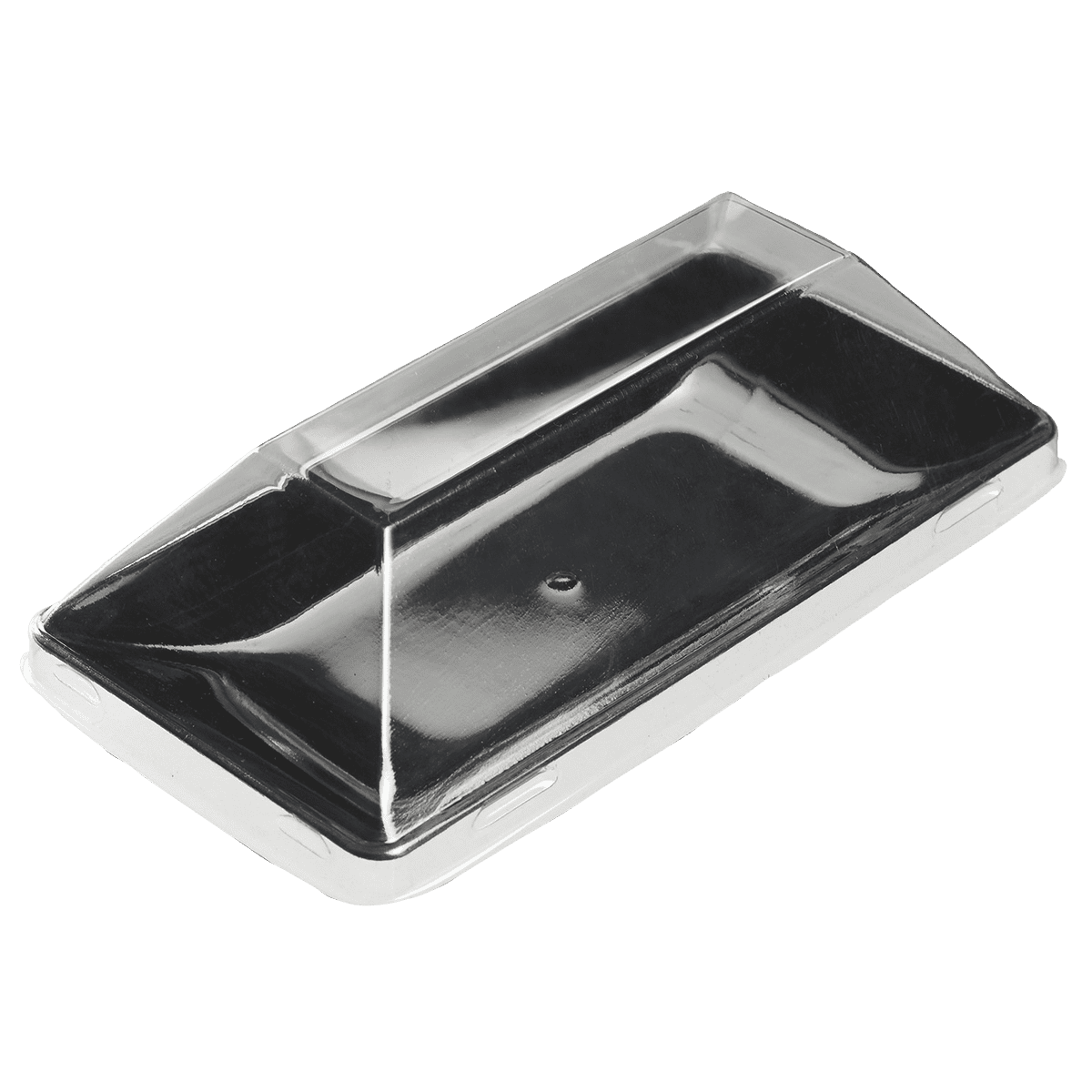 Il coperchio trasparente si adatta perfettamente al piatto Fluid 130x65x10 mm per garantire una chiusura ermetica e sicura.