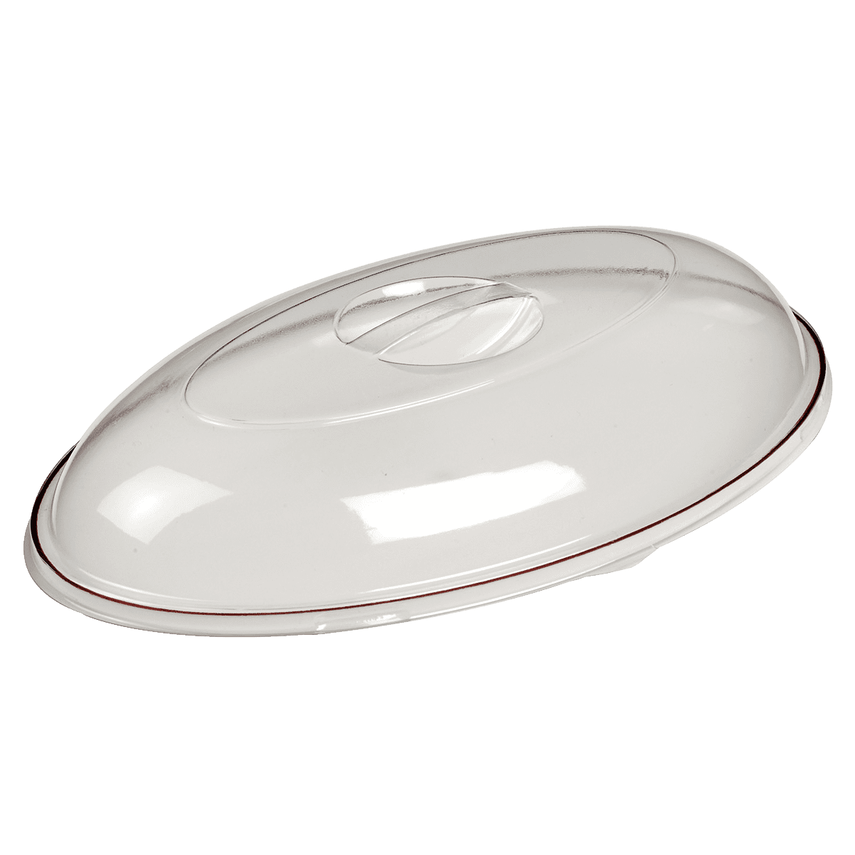 Pensato per la praticità, integra un incavo ergonomico che facilita la presa per sollevare il coperchio senza toccare gli alimenti, oltre a una linguetta sul lato inferiore che permette di rimuoverlo facilmente dal piatto. Questa attenzione ai dettagli semplifica il servizio dei piatti durante buffet, ordini da asporto o esposizioni in vetrina.