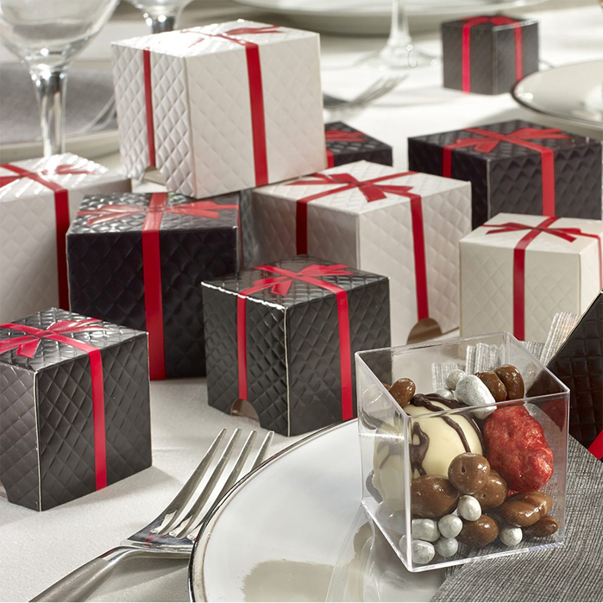 Misurando 46x46x44 mm, offre una capacità generosa di 70 ml, permettendoti di presentare con eleganza confetti, cioccolatini e molto altro.