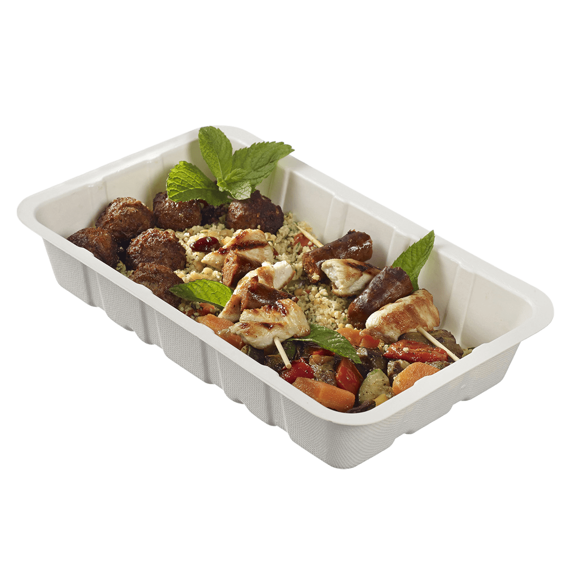 La Barchetta GN1/4 H 45 mm in polpa di canna laminata CPET è ideale per un utilizzo pratico e resistente nei vostri servizi di catering, ristorazione veloce o eventi.