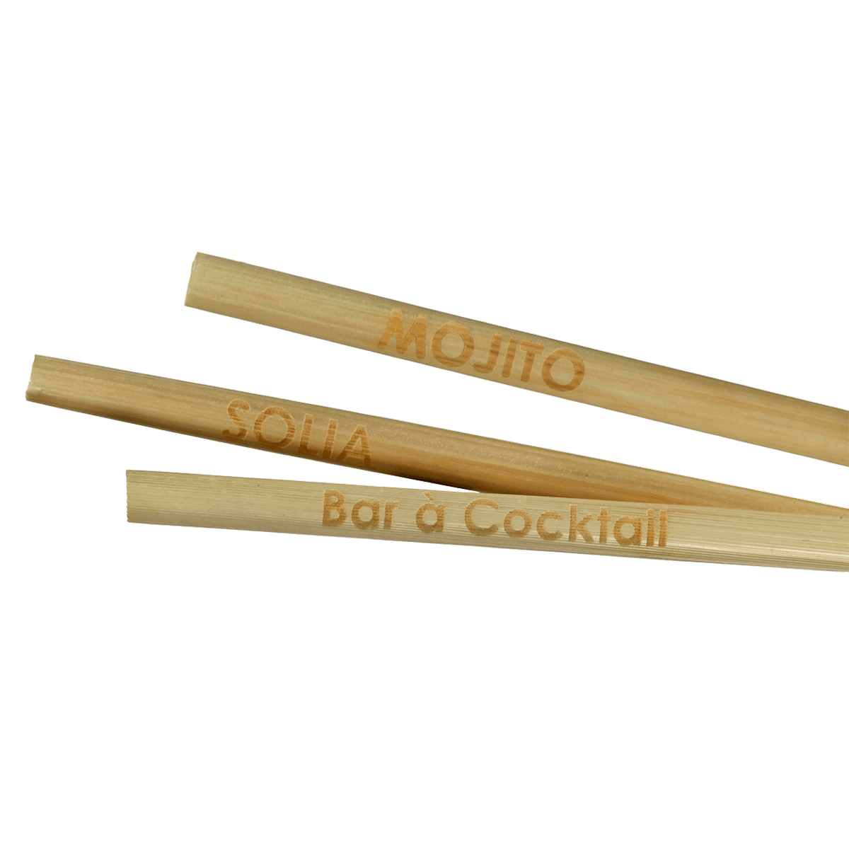 Un servizio di personalizzazione tramite incisione laser è disponibile per ordini a partire da 1000 canucce, entro 10 giorni e con un limite di 25 caratteri.