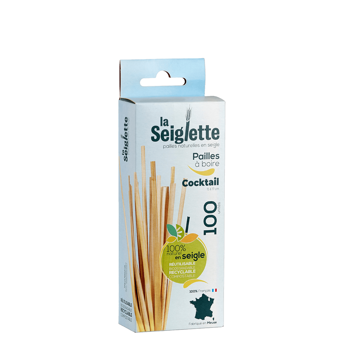 Le canucce di segale Cocktail sono compostabili. Derivate da un'agricoltura francese in conversione biologica, sono prodotte senza prodotti chimici. Le canucce di segale naturale sono ideali per un cocktail o una bevanda calda.