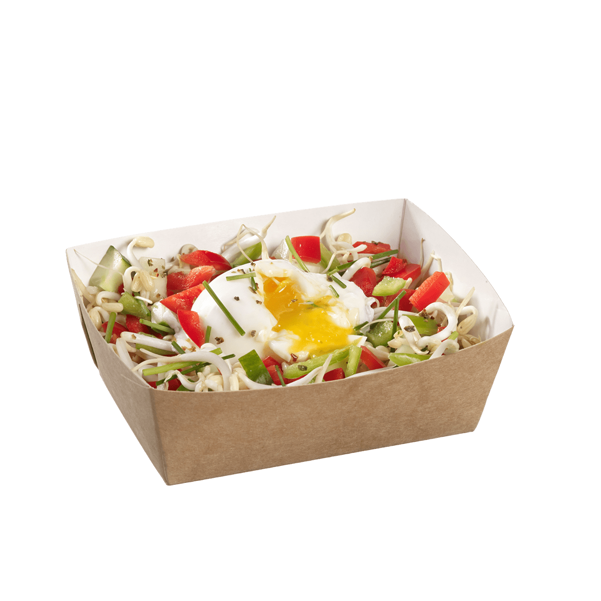 Scopri la vaschetta per insalata in cartone kraft da 500 ml, un contenitore ideale per i professionisti della ristorazione e del servizio da asporto. Con dimensioni di 140x105 mm, questa vaschetta è perfetta per presentare le tue insalate, piatti freddi e altre preparazioni. Il suo design in cartone kraft garantisce una resistenza termica, permettendo di servire piatti fino a 100°C, rendendola un'opzione versatile per i tuoi eventi e buffet.