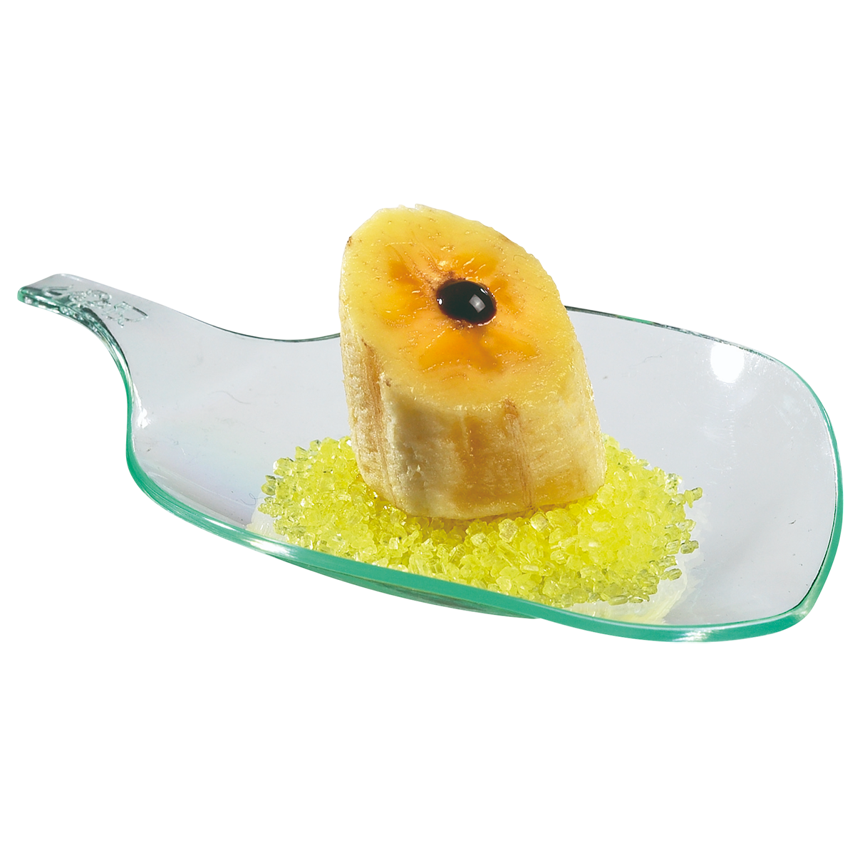 Originale e leggera, questa verrina a forma di petalo è perfetta per degustazioni e antipasti. Colore verde trasparente per una presentazione elegante.