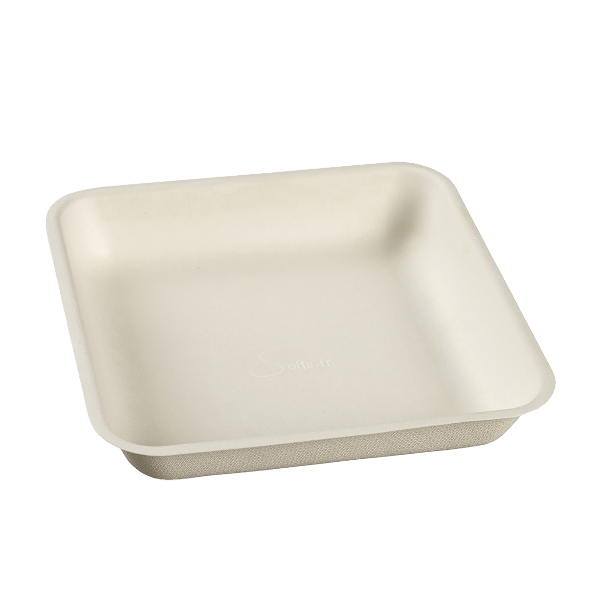 Questo piatto quadrato in polpa di canna di dimensioni 192 x 192 x 35 mm è progettato per offrire una presentazione curata ed efficace dei tuoi piatti. Il suo design quadrato, semplice ed elegante, dona un tocco moderno pur restando sobrio.