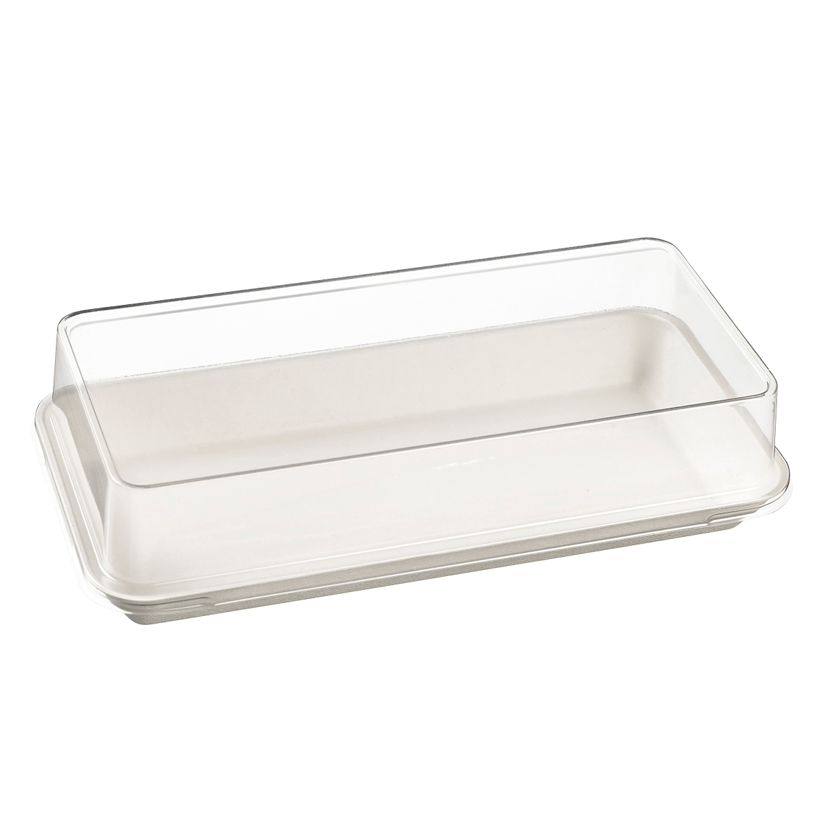Progettato per un uso monouso, il piatto Kanopée in polpa di canna laminata (200x100 mm) è ideale per piatti lunghi o presentazioni di qualità.