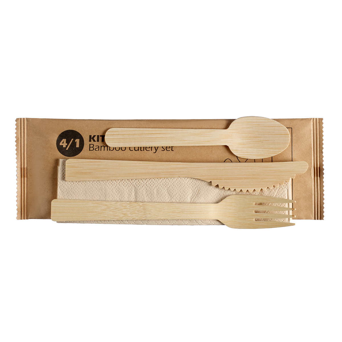 Il Kit Posate Bambù 4-1 include una forchetta, un coltello, un cucchiaino e una salvietta, tutti realizzati in bambù naturale. Questo kit è ideale per i servizi di catering, buffet o pasti da asporto. Facile da personalizzare, offre una soluzione pratica ed elegante che si adatta alle vostre esigenze.