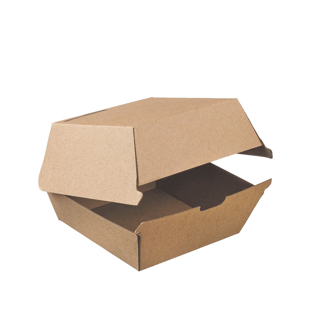 Questa scatola burger Ecokraft formato piccolo si distingue per la sua semplicità e il cartone naturale.