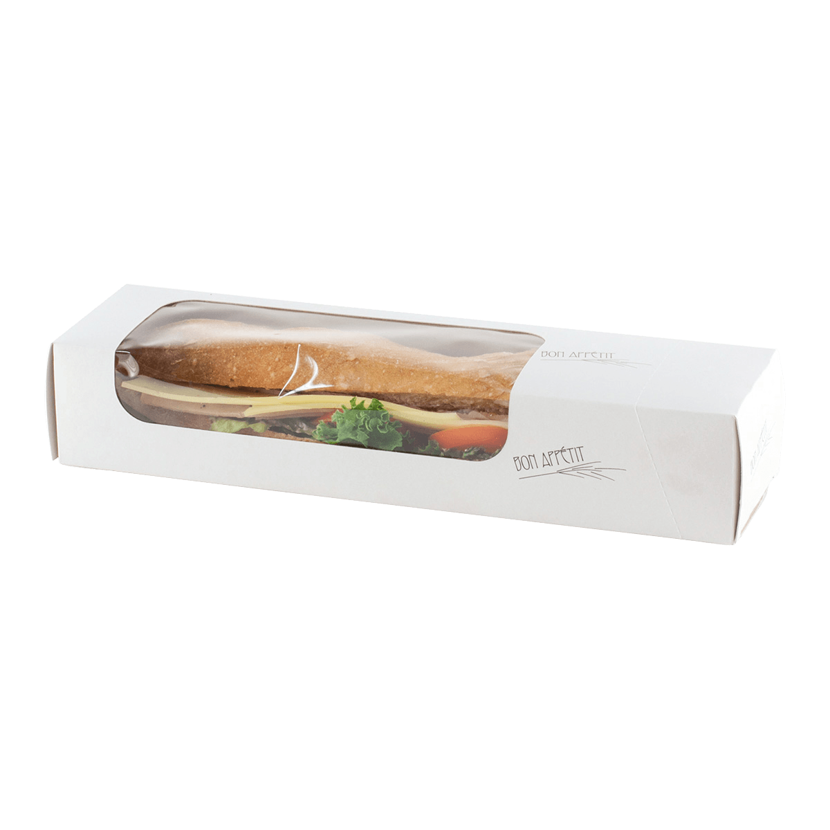 Scopri la scatola sandwich premium con finestra, l'imballaggio perfetto per valorizzare e trasportare i tuoi deliziosi sandwich con stile e praticità. Con dimensioni di 290x75x55 mm, questa scatola in cartone è progettata specificamente per contenere i tuoi sandwich generosi, offrendo al contempo una visibilità attraente grazie alla sua finestra.