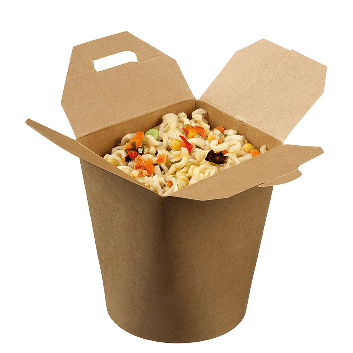 La capienza intermedia è ideale per servire noodles, wok o piatti con salse. Realizzata in cartone kraft, mantiene il calore ed è facile da utilizzare.