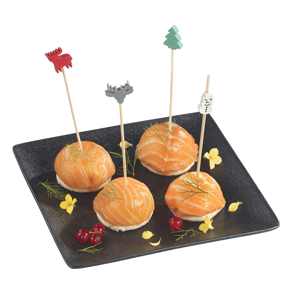Proposti in quattro modelli diversi – albero di Natale, pupazzo di neve, renna rossa ed alce grigio – questi stuzzicadenti sono perfetti per le tue presentazioni culinarie durante le festività natalizie.