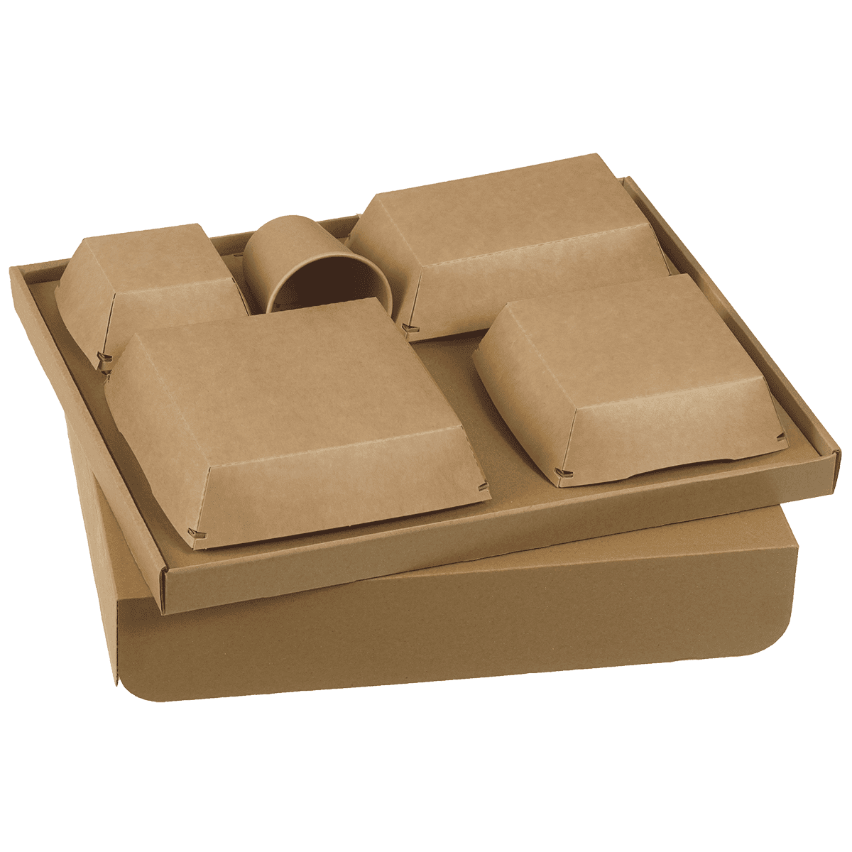 Kit vassoio-pasto Ecokraft, tutto in cartone, completamente riciclabile.