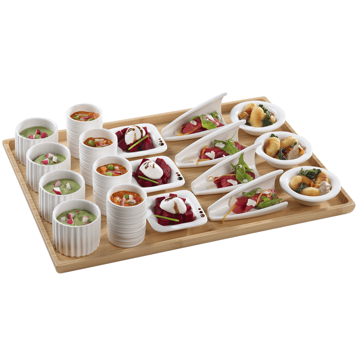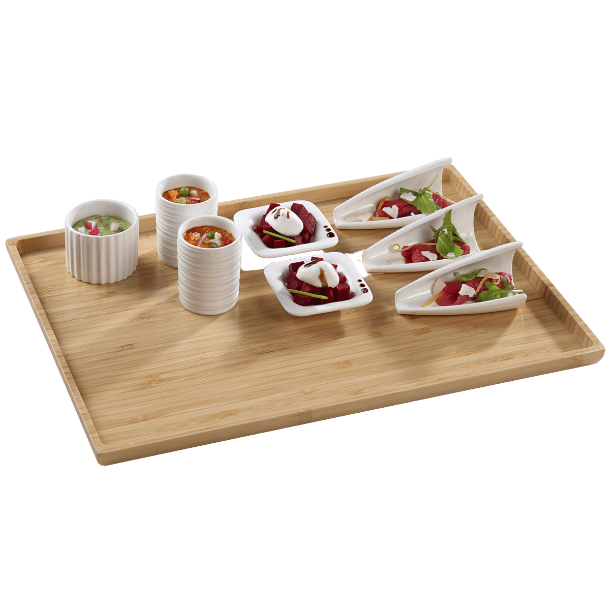 Scopri il vassoio in bambù Atlas, un elemento indispensabile per esaltare le tue presentazioni culinarie durante eventi speciali.