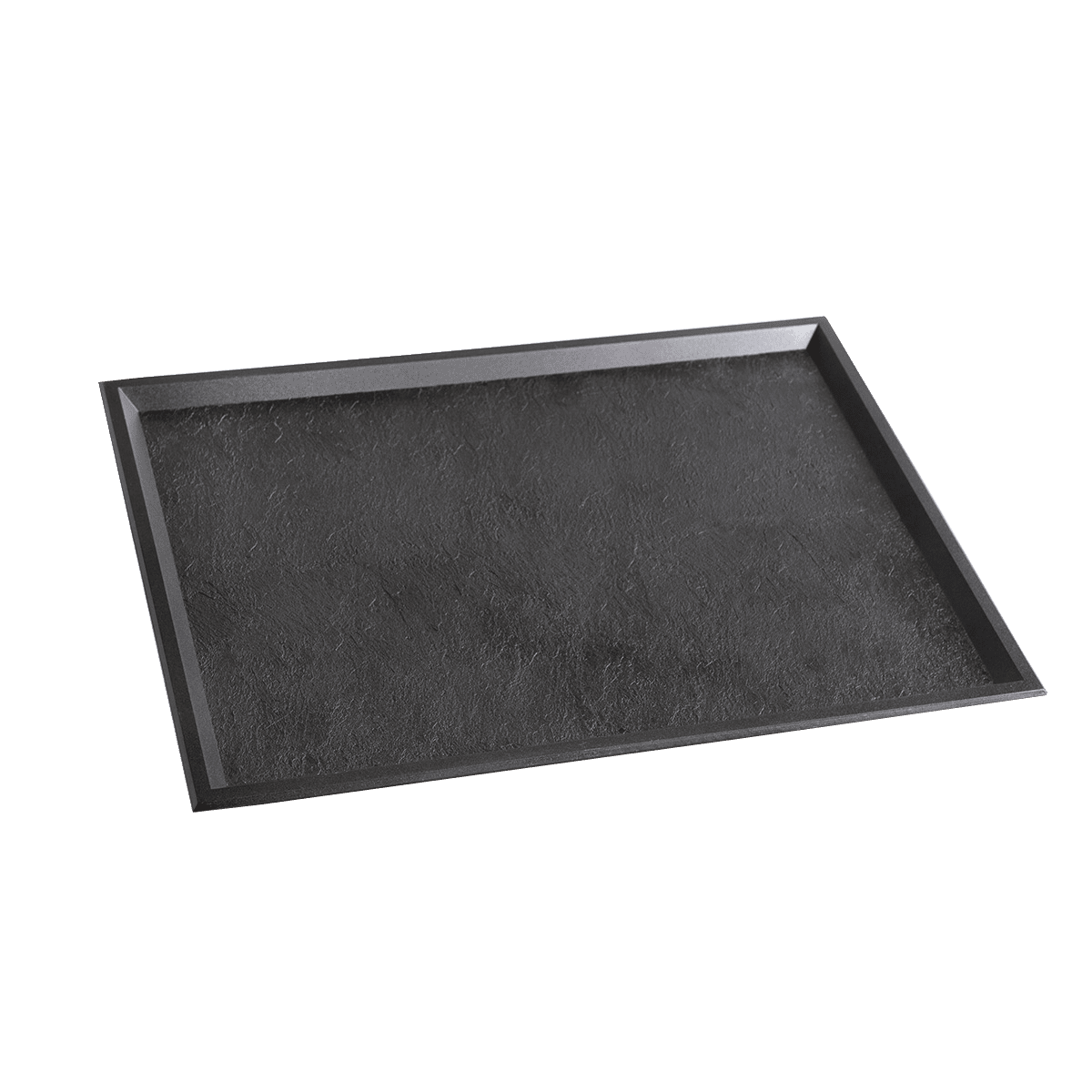 Une gamme de plateaux en plastique, effet ardoise en texture et en couleur.