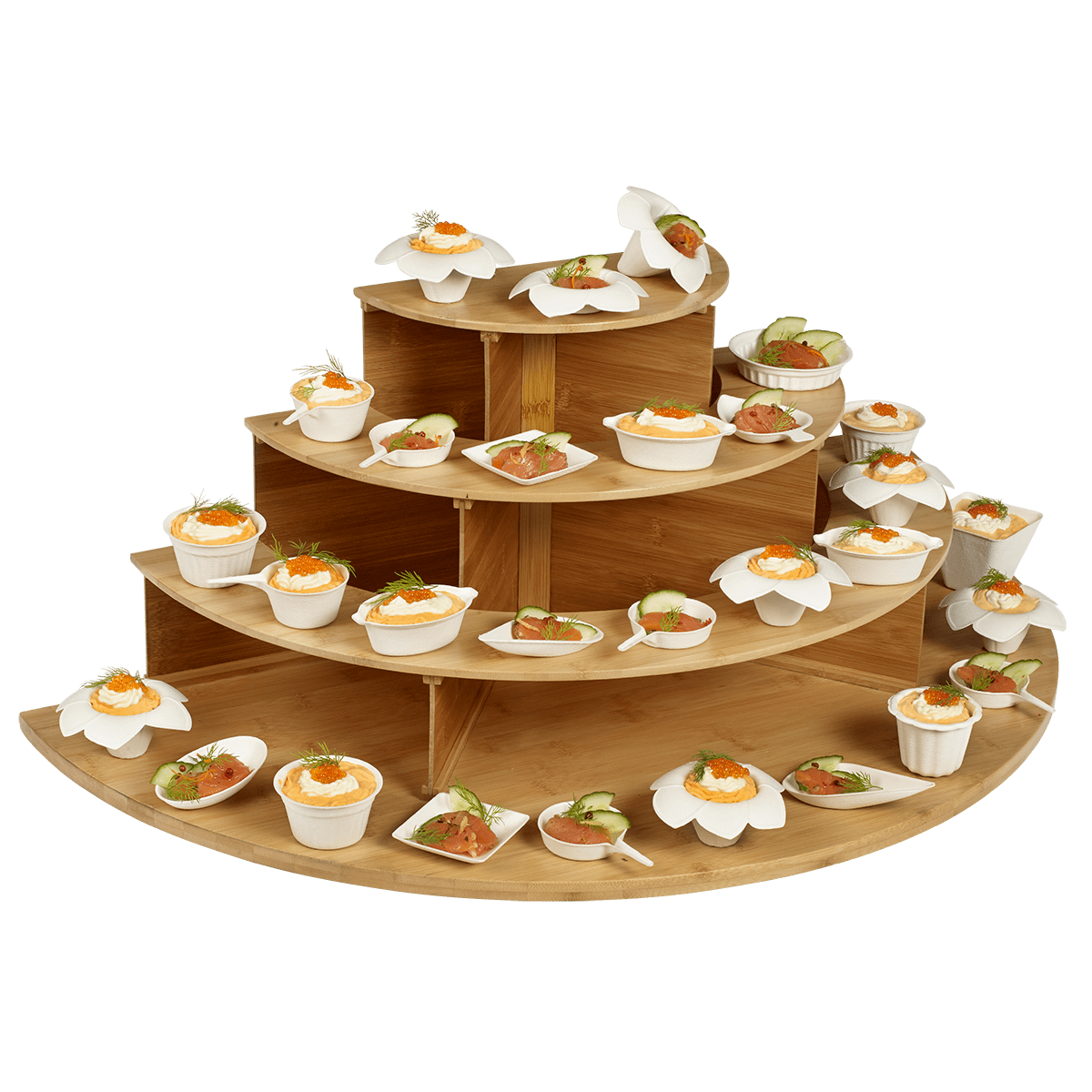 Conçu en bambou, il apporte une touche naturelle et haut de gamme tout en offrant une mise en valeur spectaculaire de vos verrines, petits pots ou bouchées.