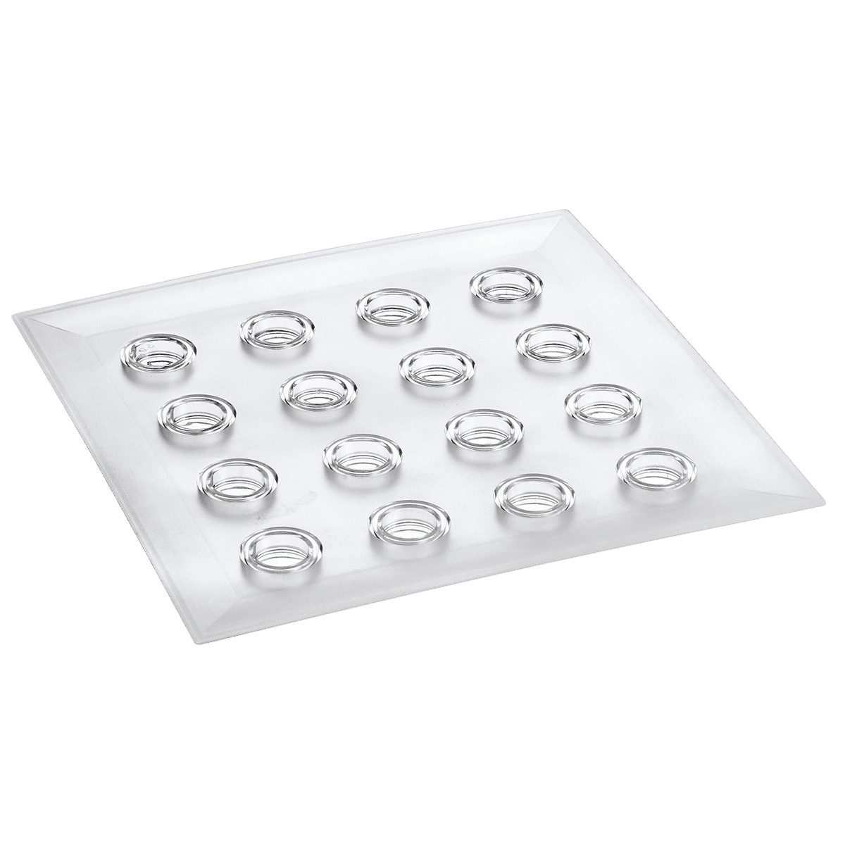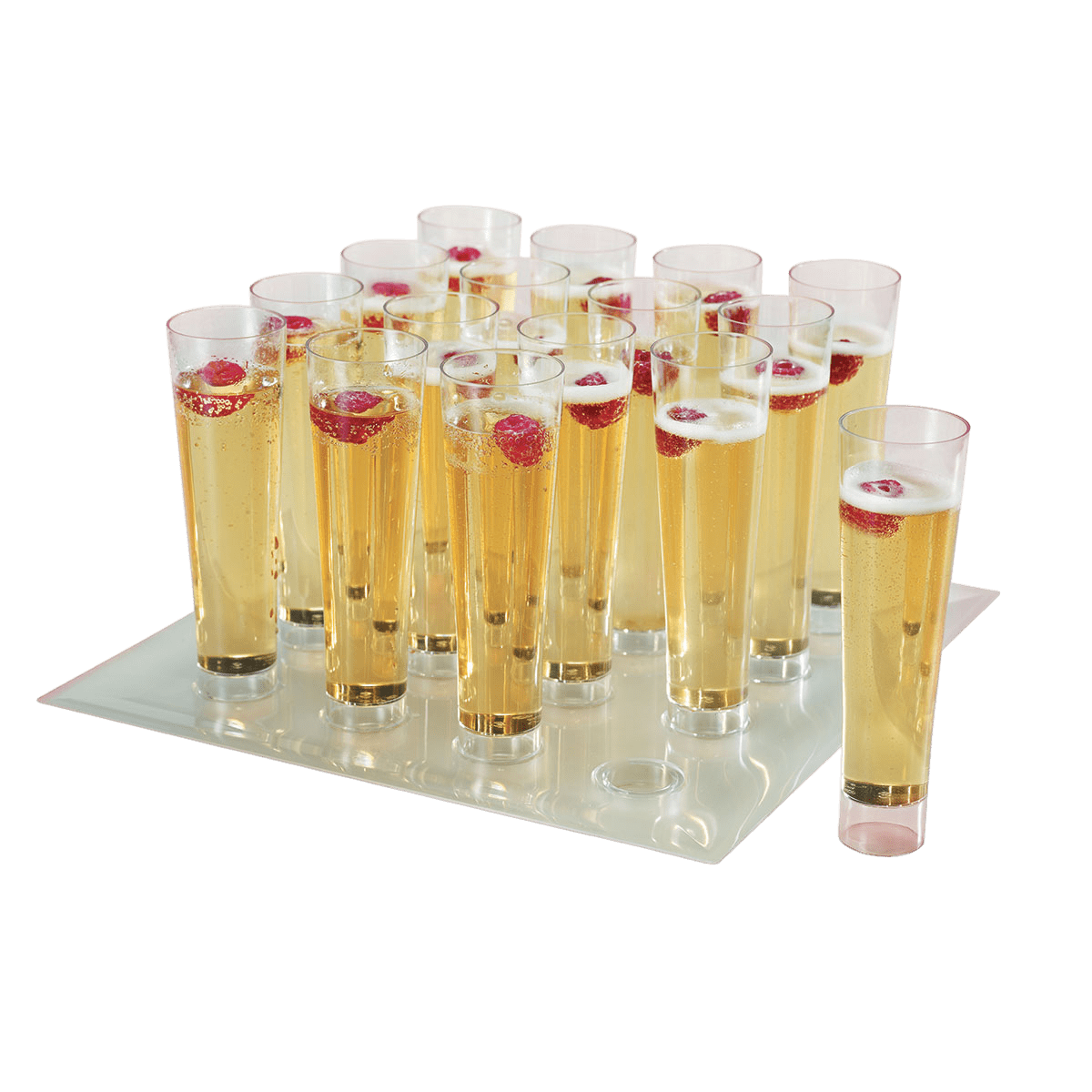 Ce plateau en PS transparent est idéal pour présenter non seulement des flûtes, mais aussi des coupelles, des coupettes et d'autres accessoires de la gamme Odyssée.