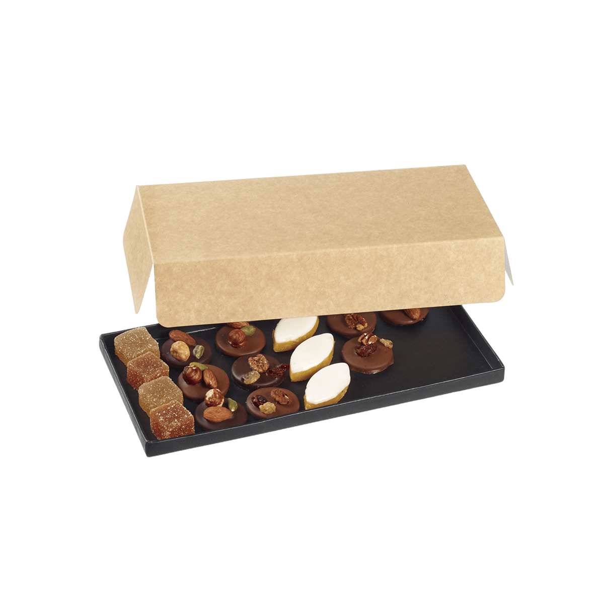 Disponible dans différentes dimensions, il s’adapte à toutes vos exigences. Des couvercles sont vendus séparément pour compléter votre présentation. Que ce soit pour des mets froids, des bouchées, ou des desserts, ce plateau offre une solution pratique et élégante pour vos événements et services à emporter.