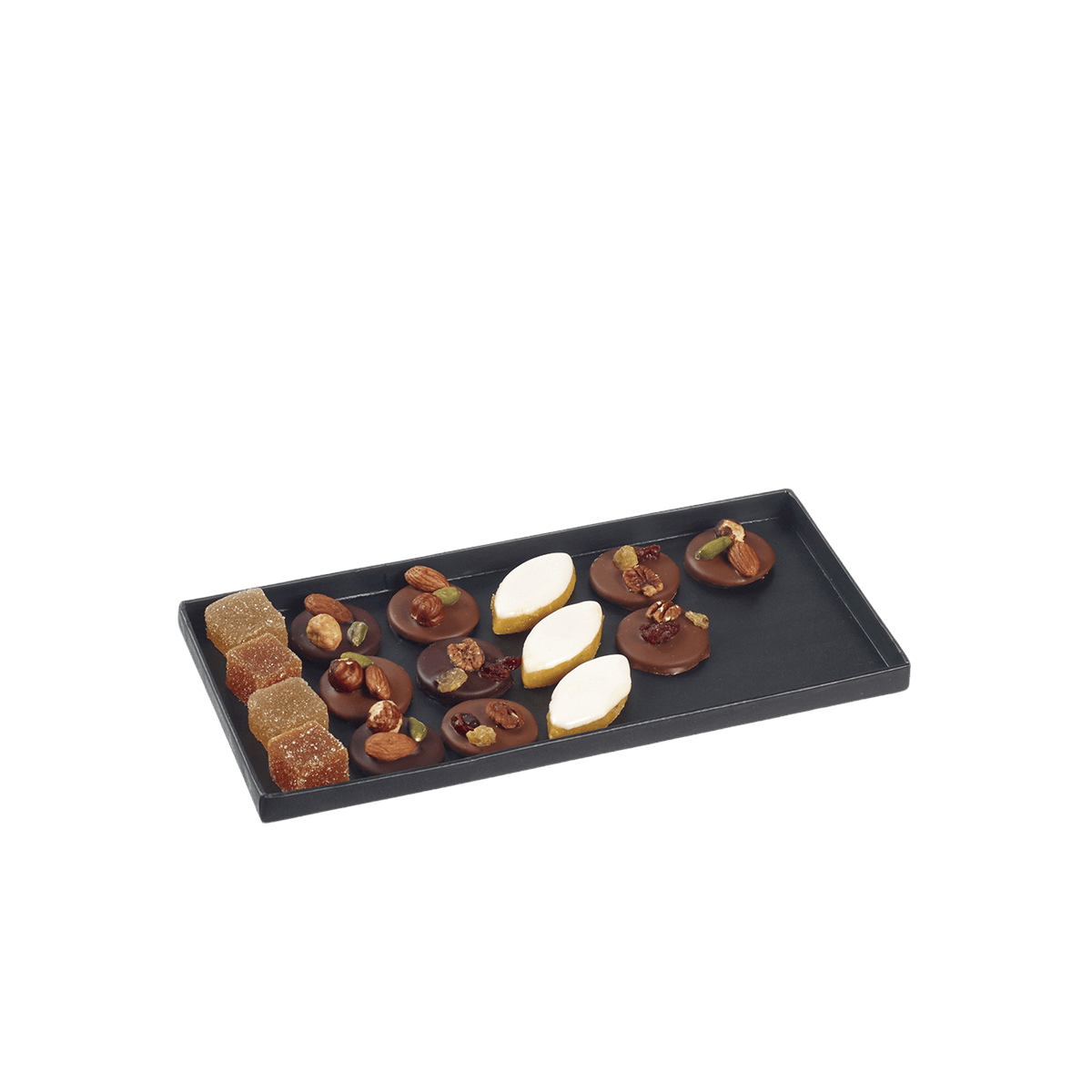 Le plateau Fenix noir mat laminé 275x126 mm est idéal pour une variété de services, du buffet au traiteur, en passant par les pâtisseries.