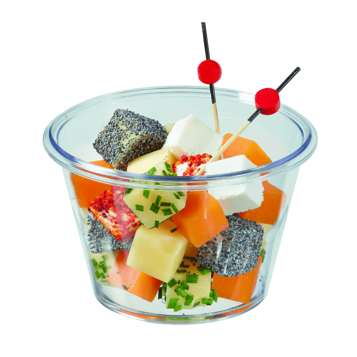 Sa transparence met en valeur les préparations et renforce l’impact visuel, tout en facilitant l’identification rapide des recettes par le client.