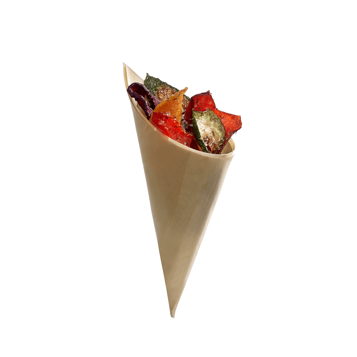 Le cône en bois 125 mm est un choix élégant et pratique pour des présentations de petites portions, des desserts ou des apéritifs.