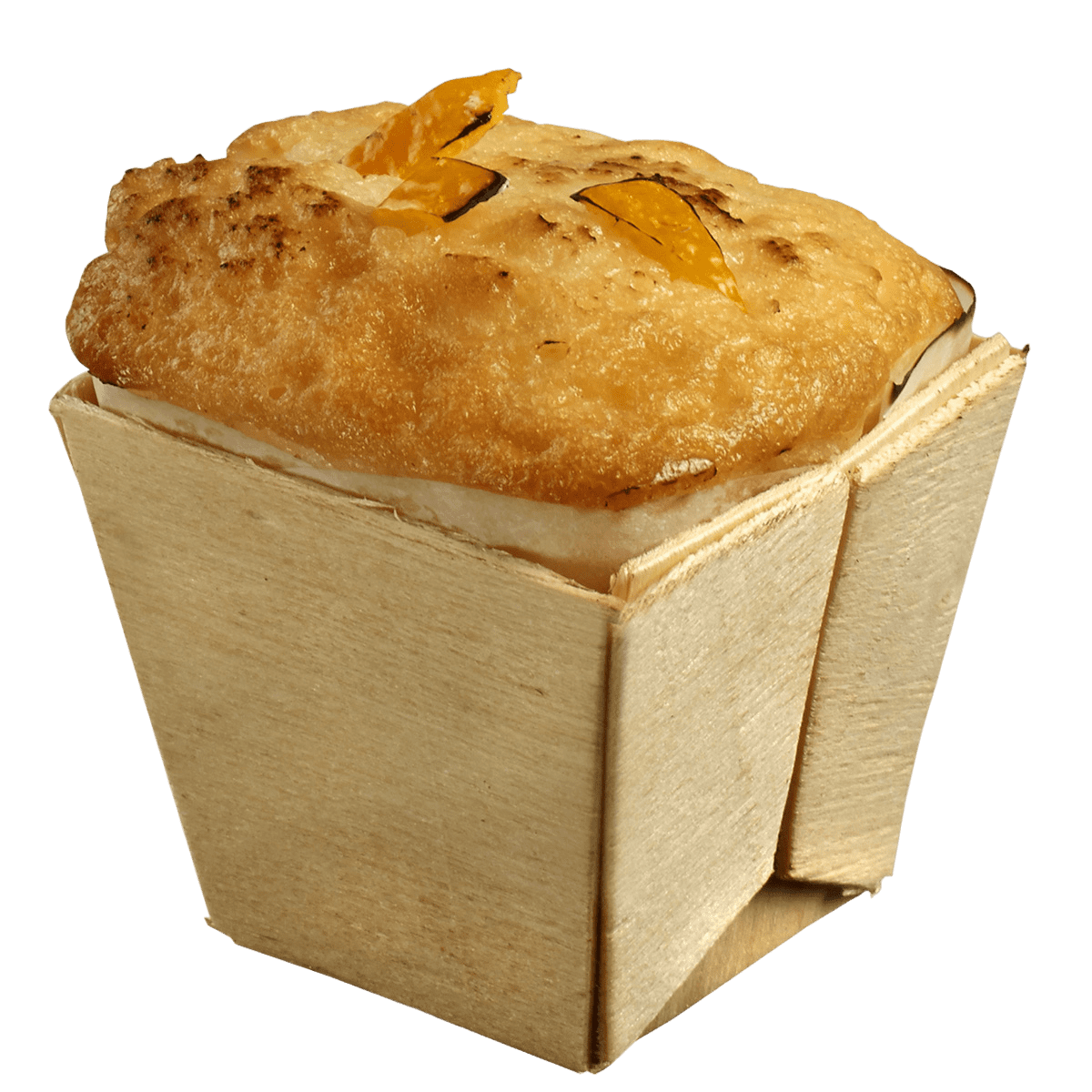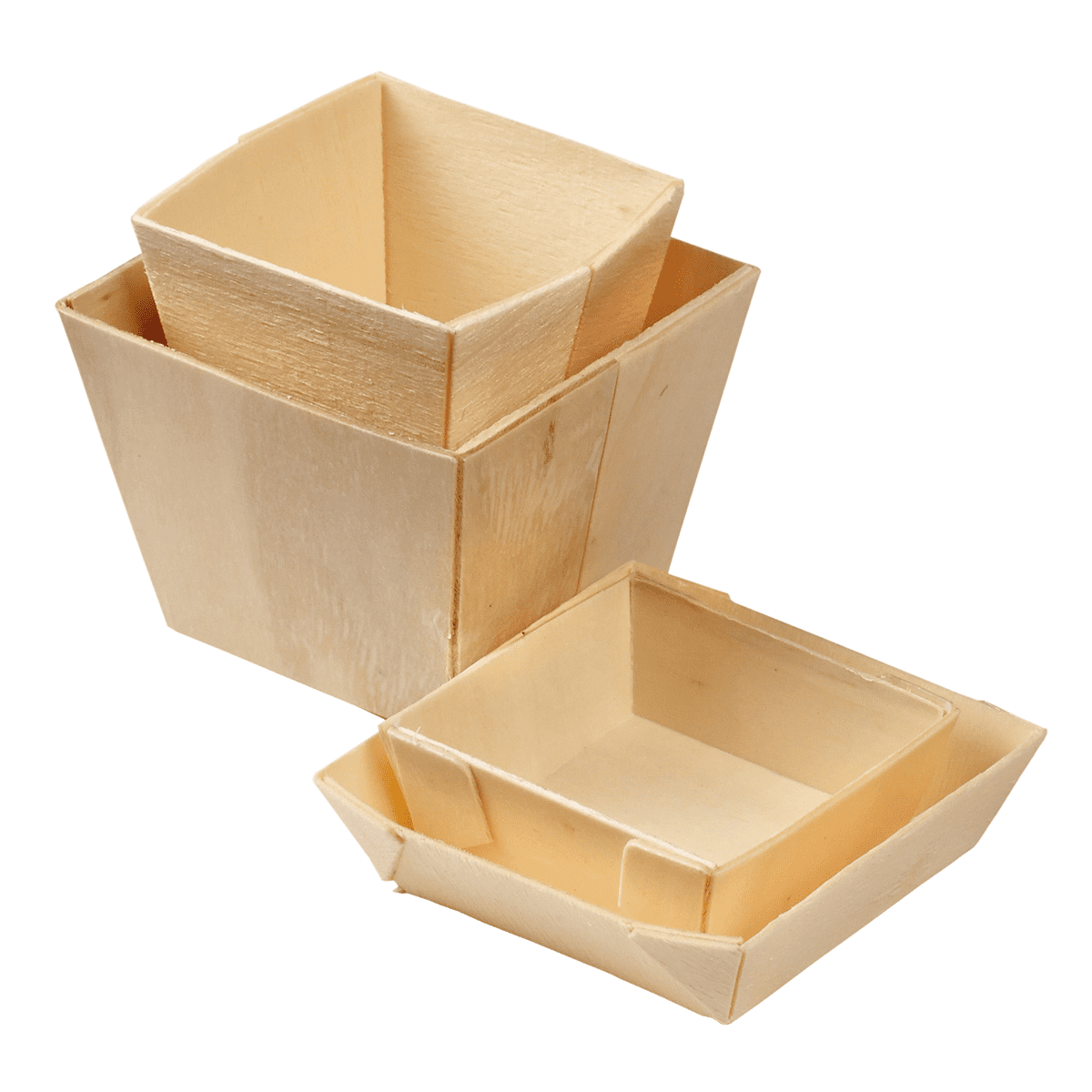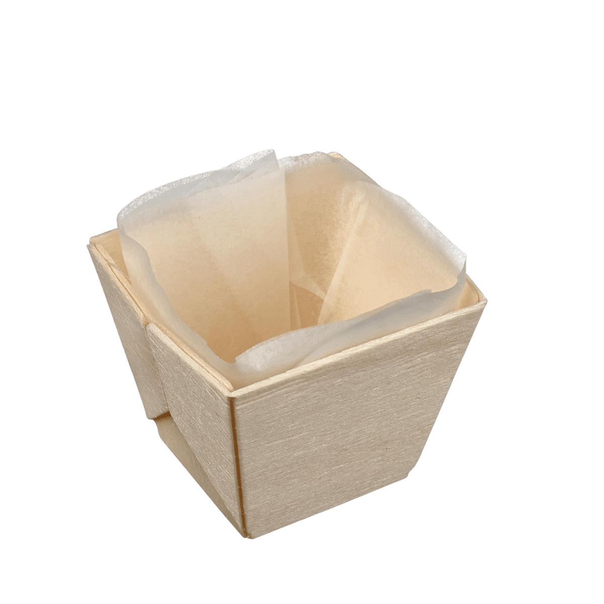 Barquette carrée en bois avec papier sulfurisé.
