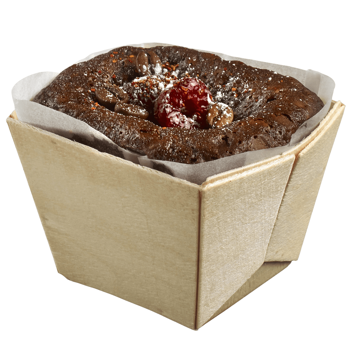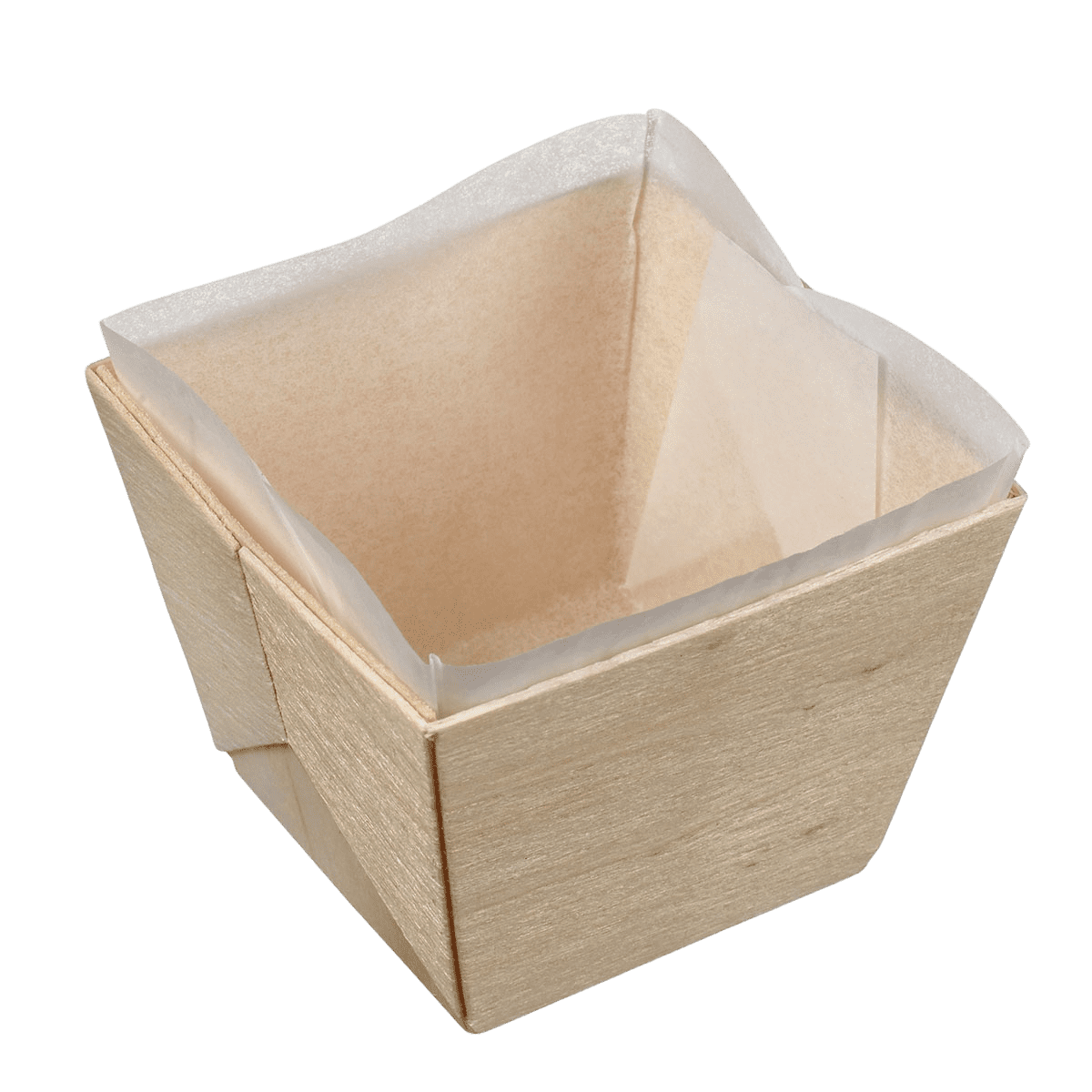 Barquette carrée en bois avec papier sulfurisé, grand modèle haut.