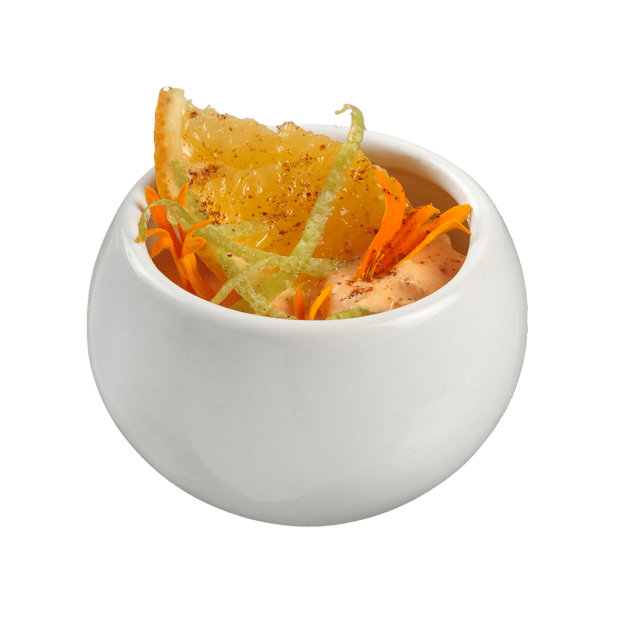 La verrine Sph'air 64 ml se distingue par sa forme sphérique unique, qui apporte une touche d'originalité à chaque plat. Fabriquée en céramique blanche de haute qualité, elle offre une présentation esthétique et sophistiquée.