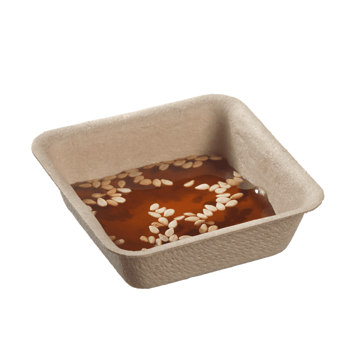 Découvrez notre verrine carrée en fibre de bambou recyclable, idéale pour une utilisation au micro-ondes et parfaite pour les événements traiteur.