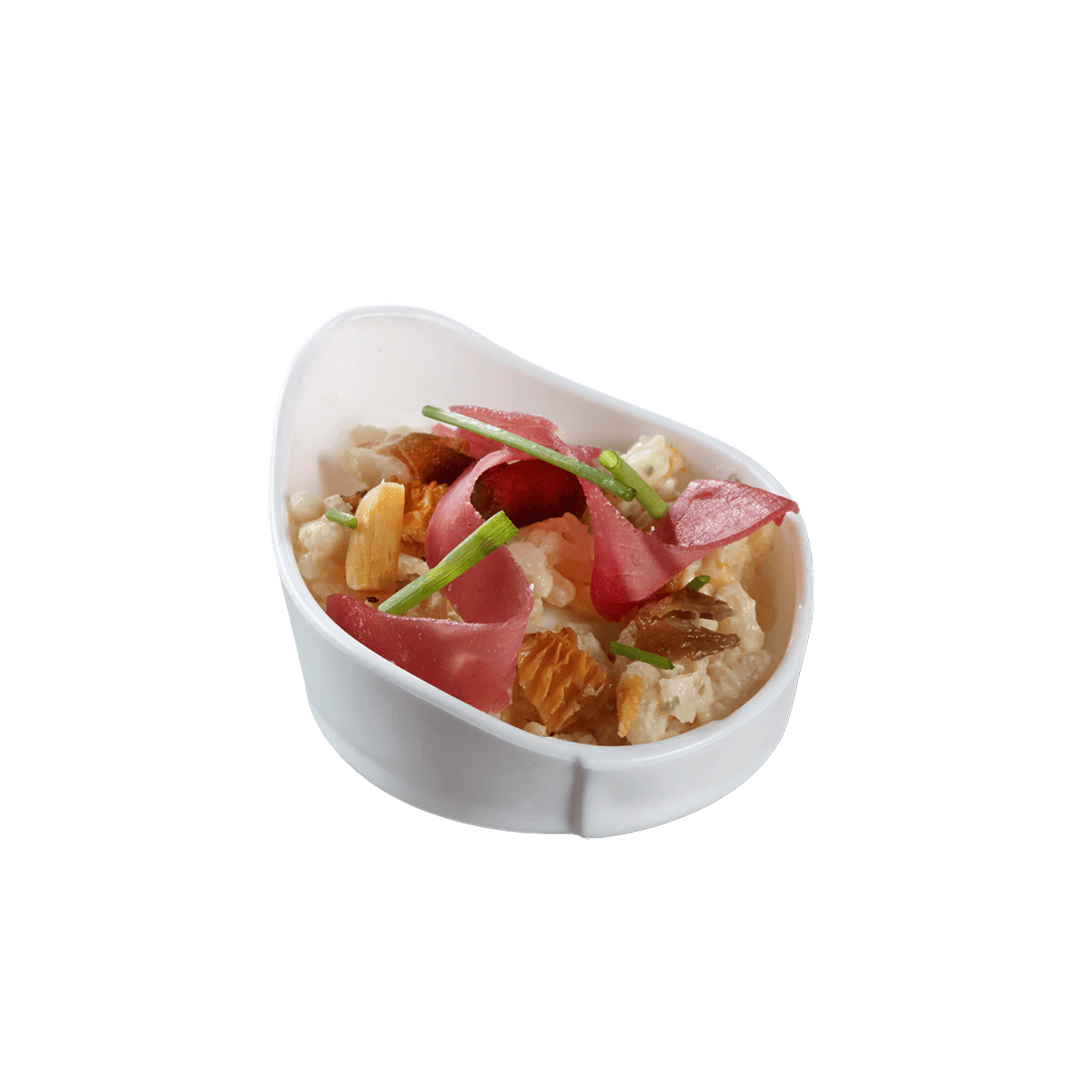 Ajoutez une touche d'authenticité à vos cocktails avec notre verrine Pasta Tortellini en PP blanc, idéale pour des dégustations originales.